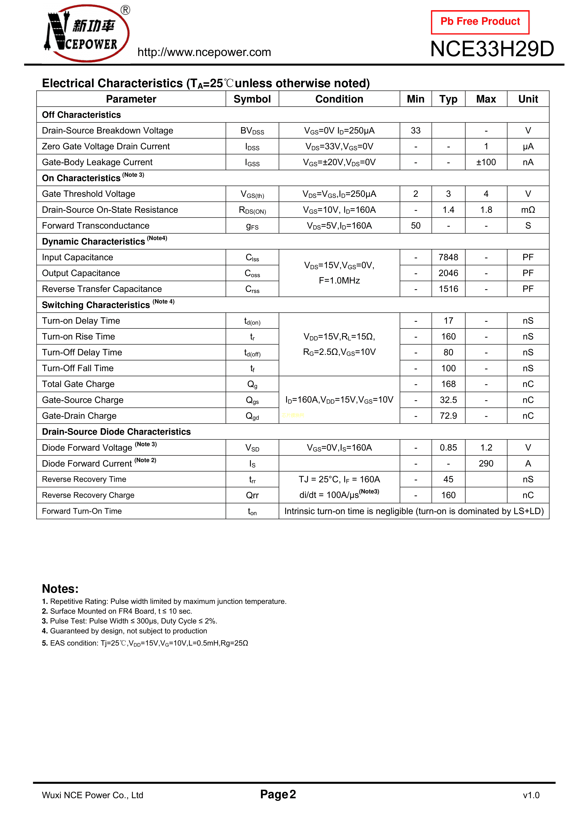 NCE33H29DPDF规格书,中英文下载