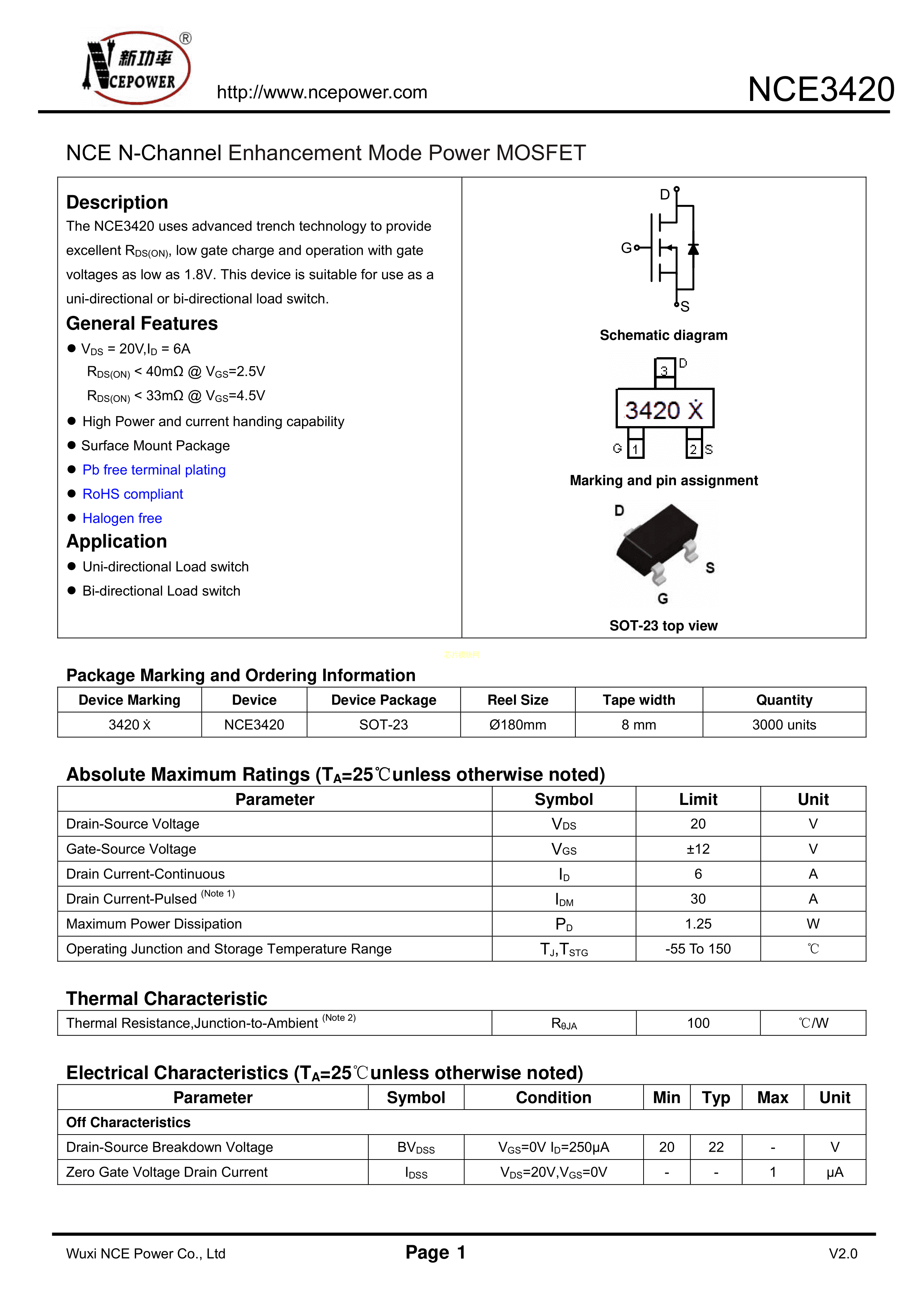 NCE3420PDF规格书,中英文下载