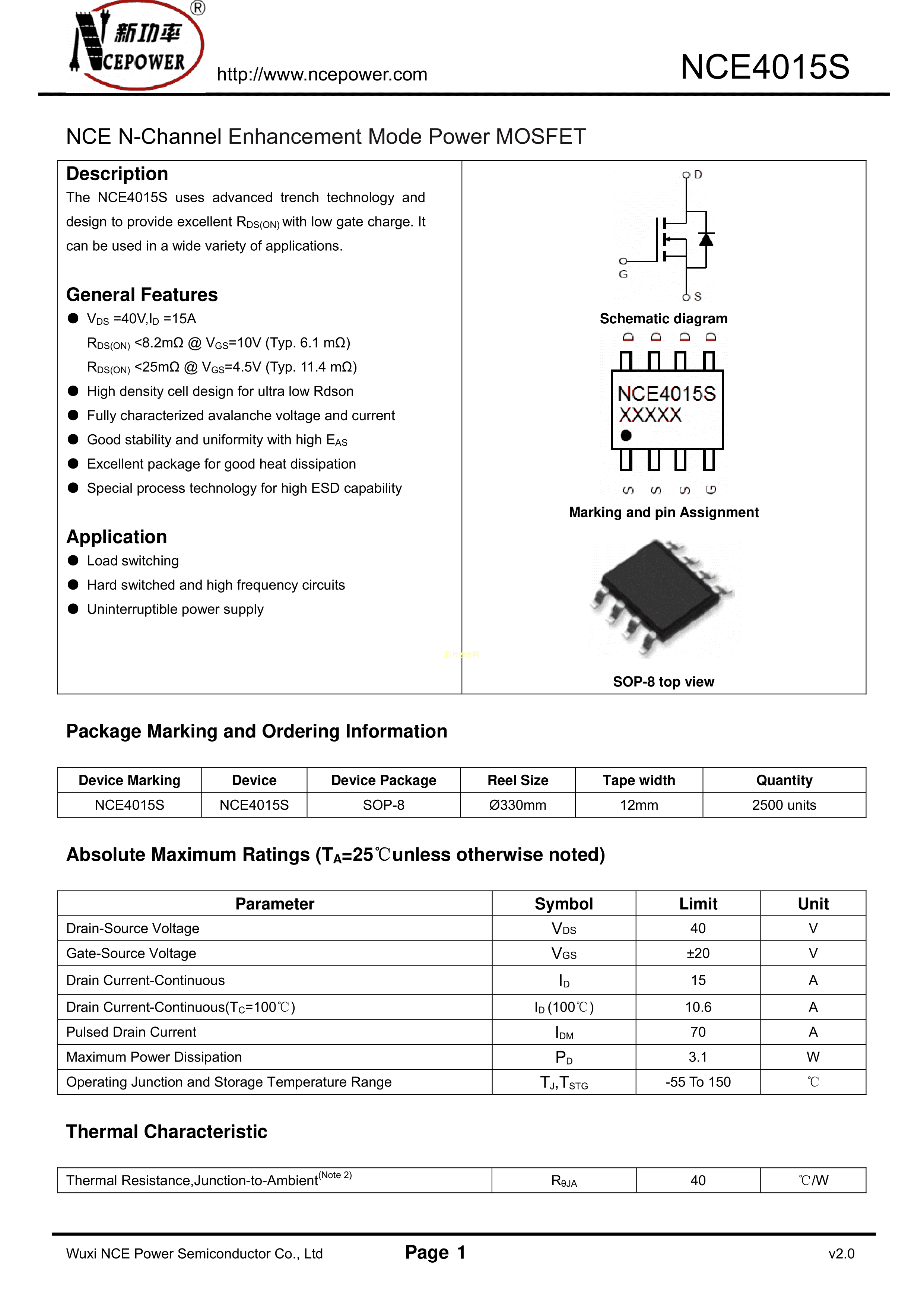 NCE4015SPDF规格书,中英文下载