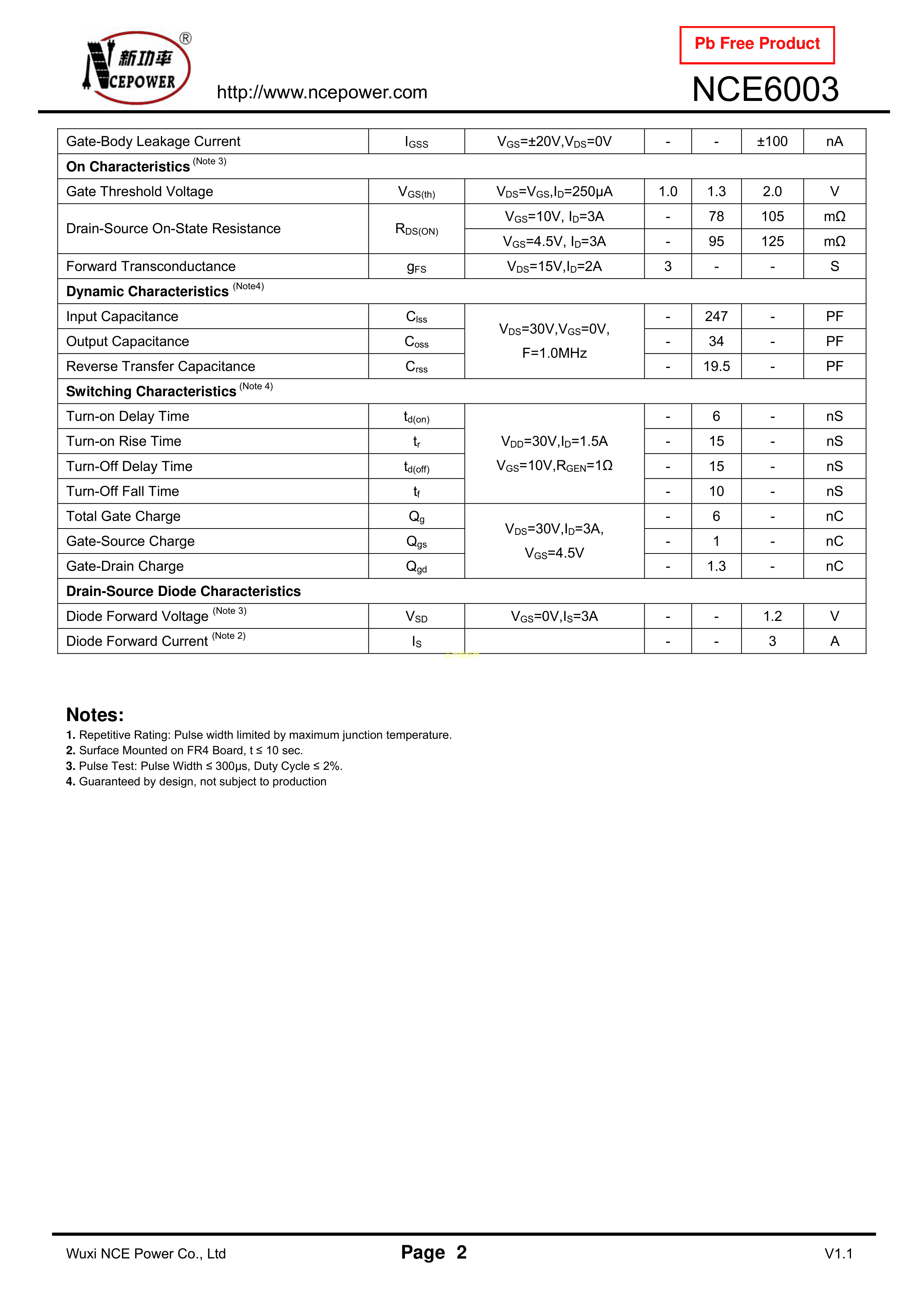 NCE6003数据手册SOT-23(SOT-23-3)封装NCE(无锡新洁能)PDF规格书,中英文下