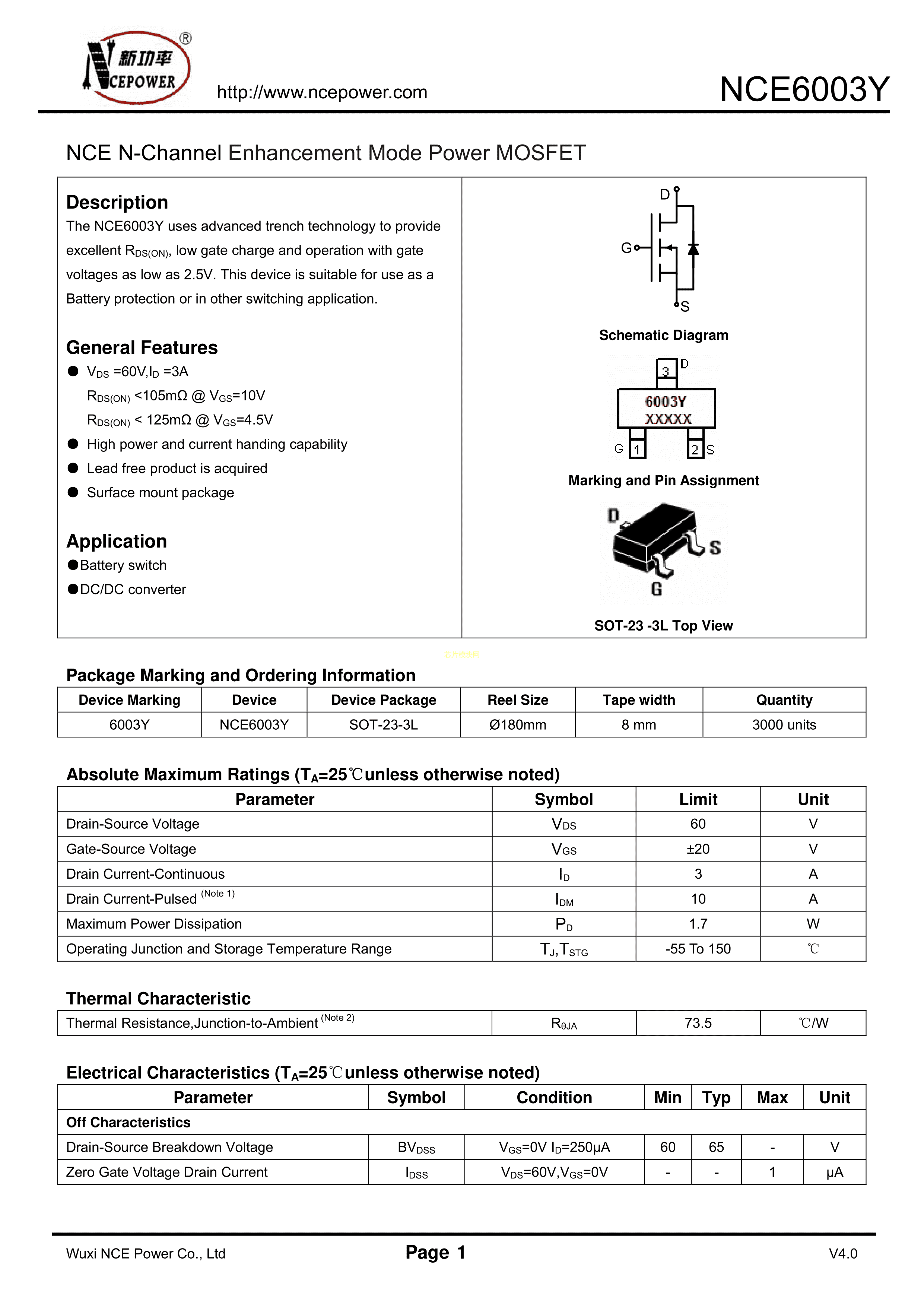 NCE6003YPDF规格书,中英文下载
