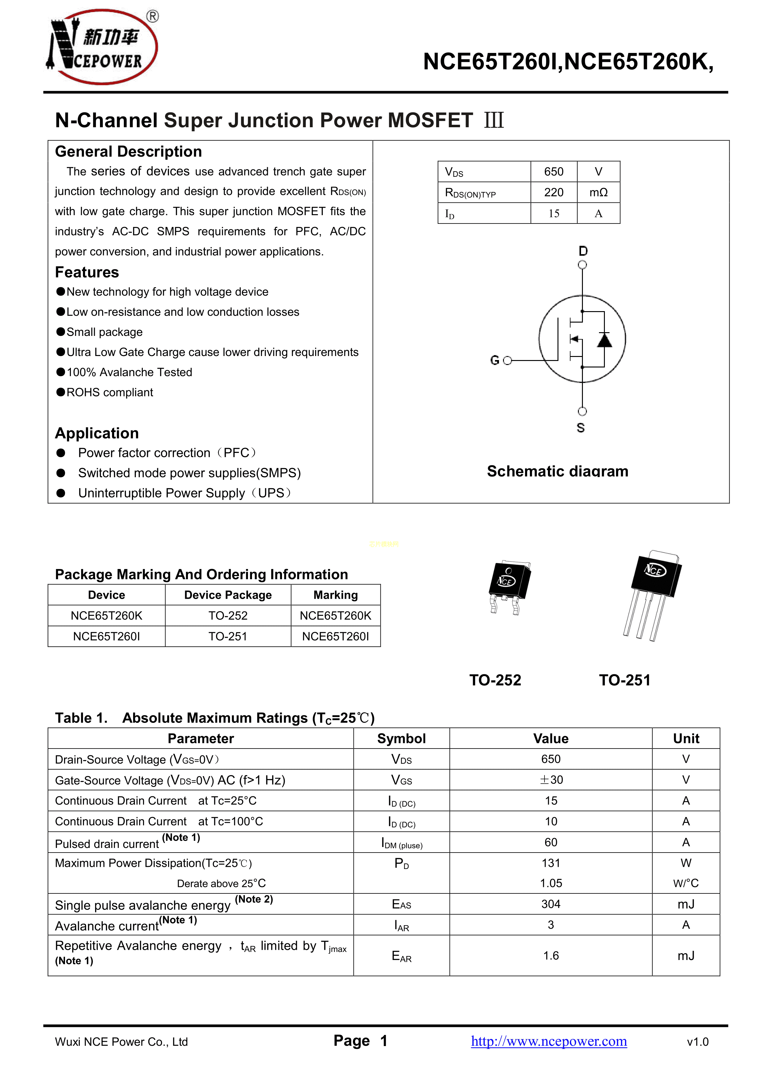 NCE65T260KPDF规格书,中英文下载