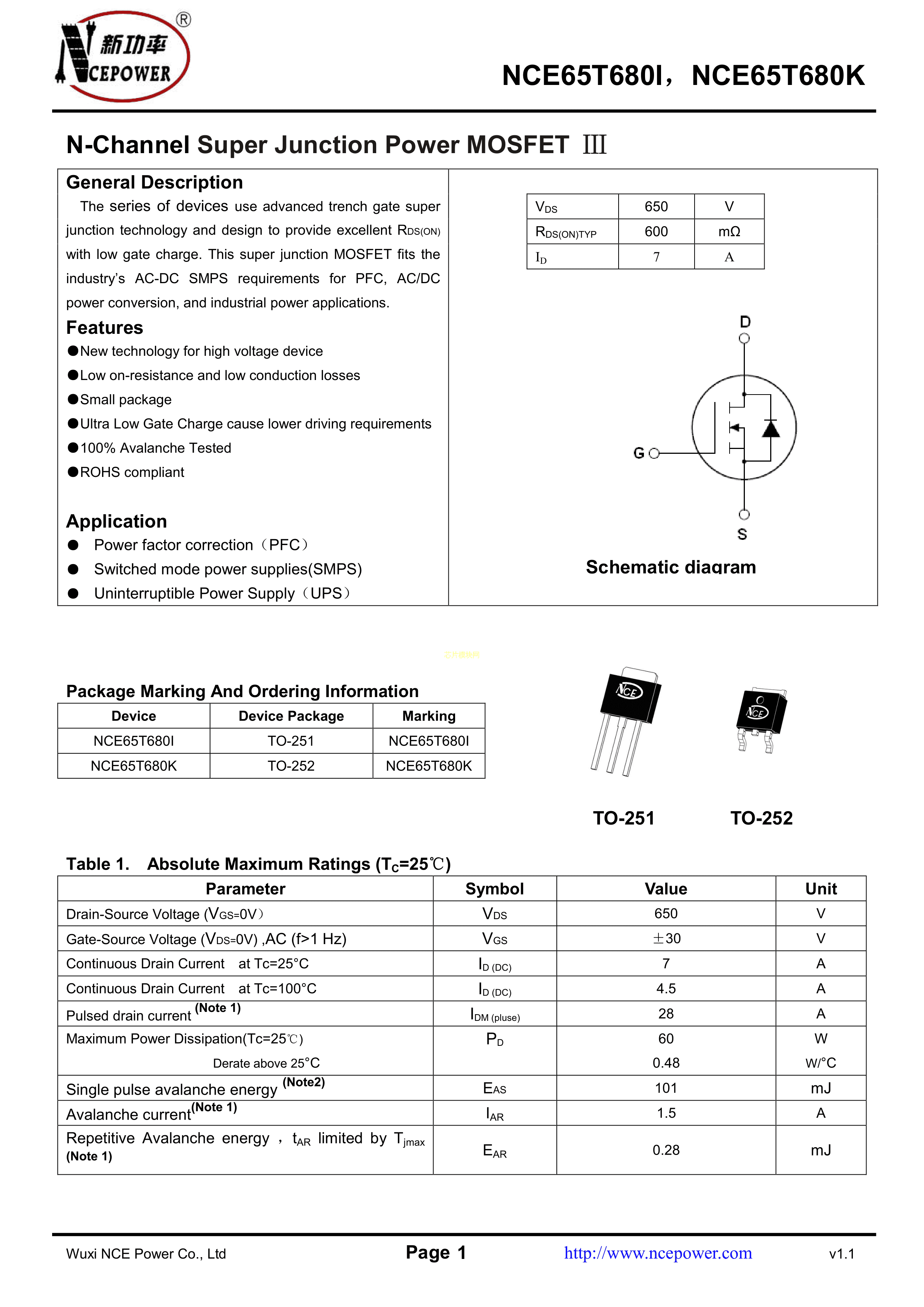 NCE65T680IPDF规格书,中英文下载
