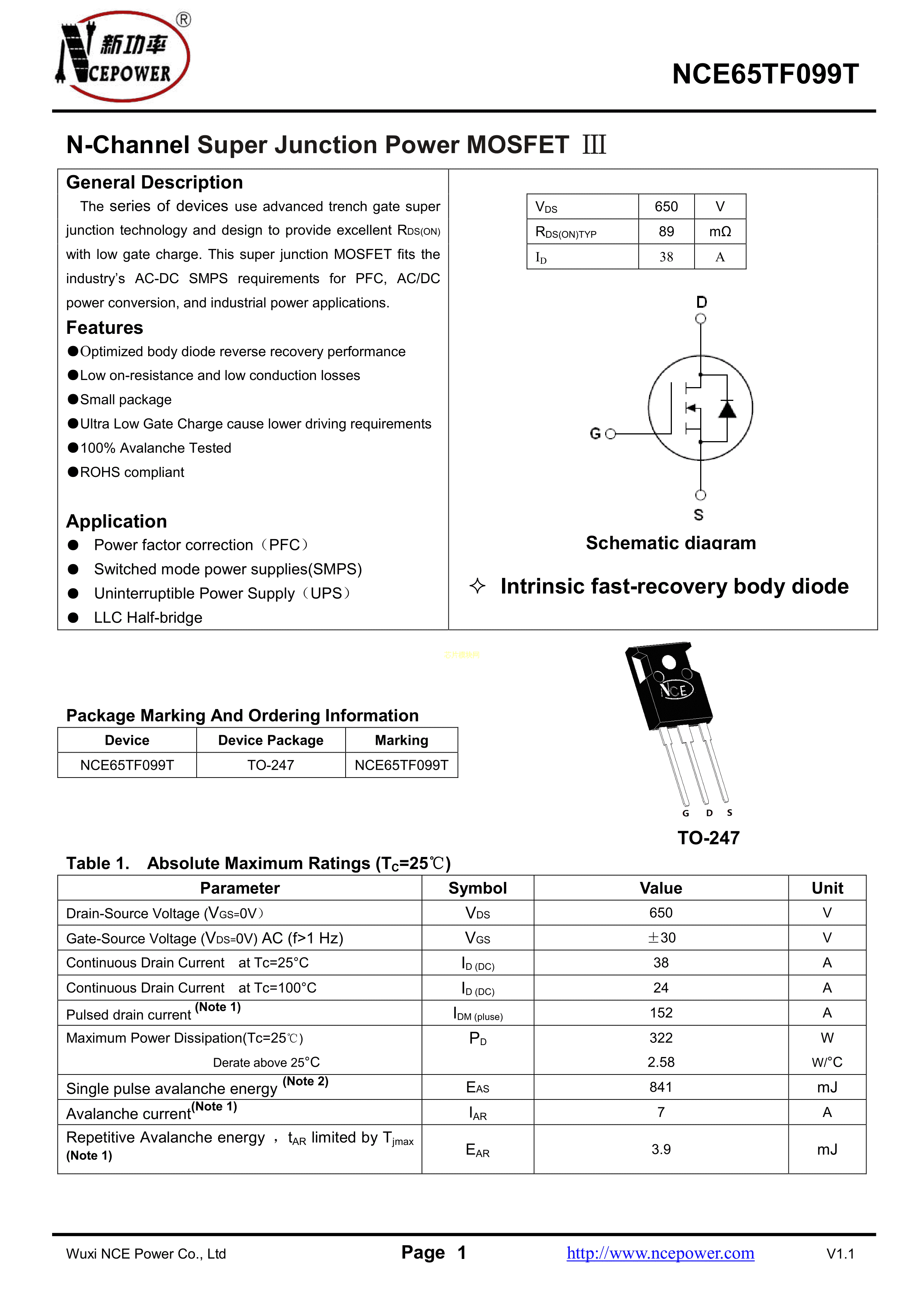 NCE65TF099TPDF规格书,中英文下载