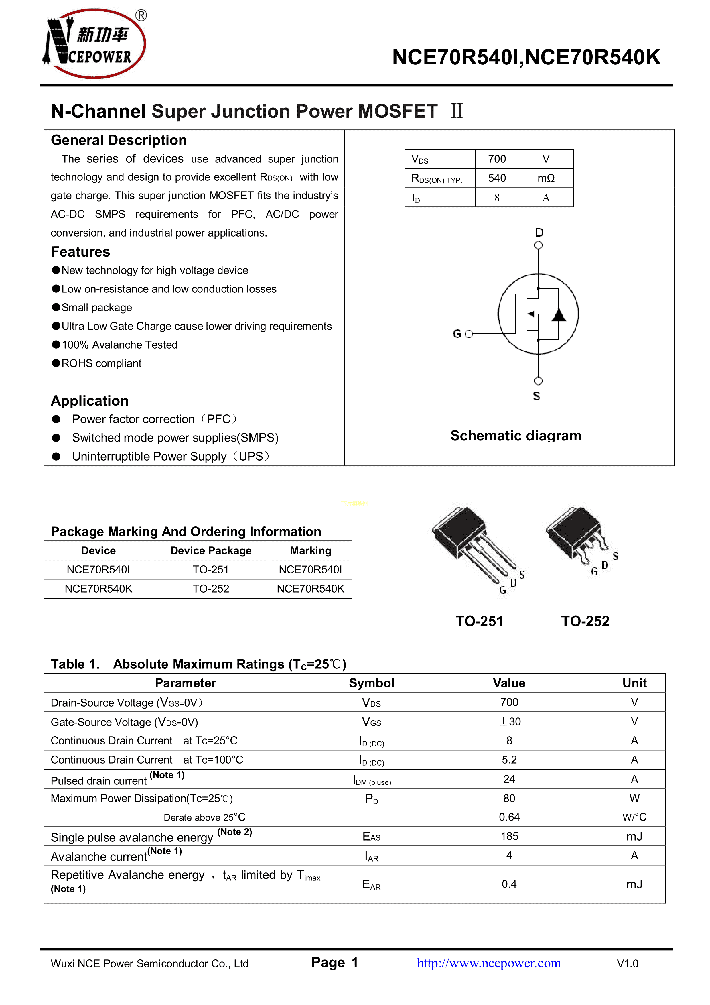 NCE70R540KPDF规格书,中英文下载