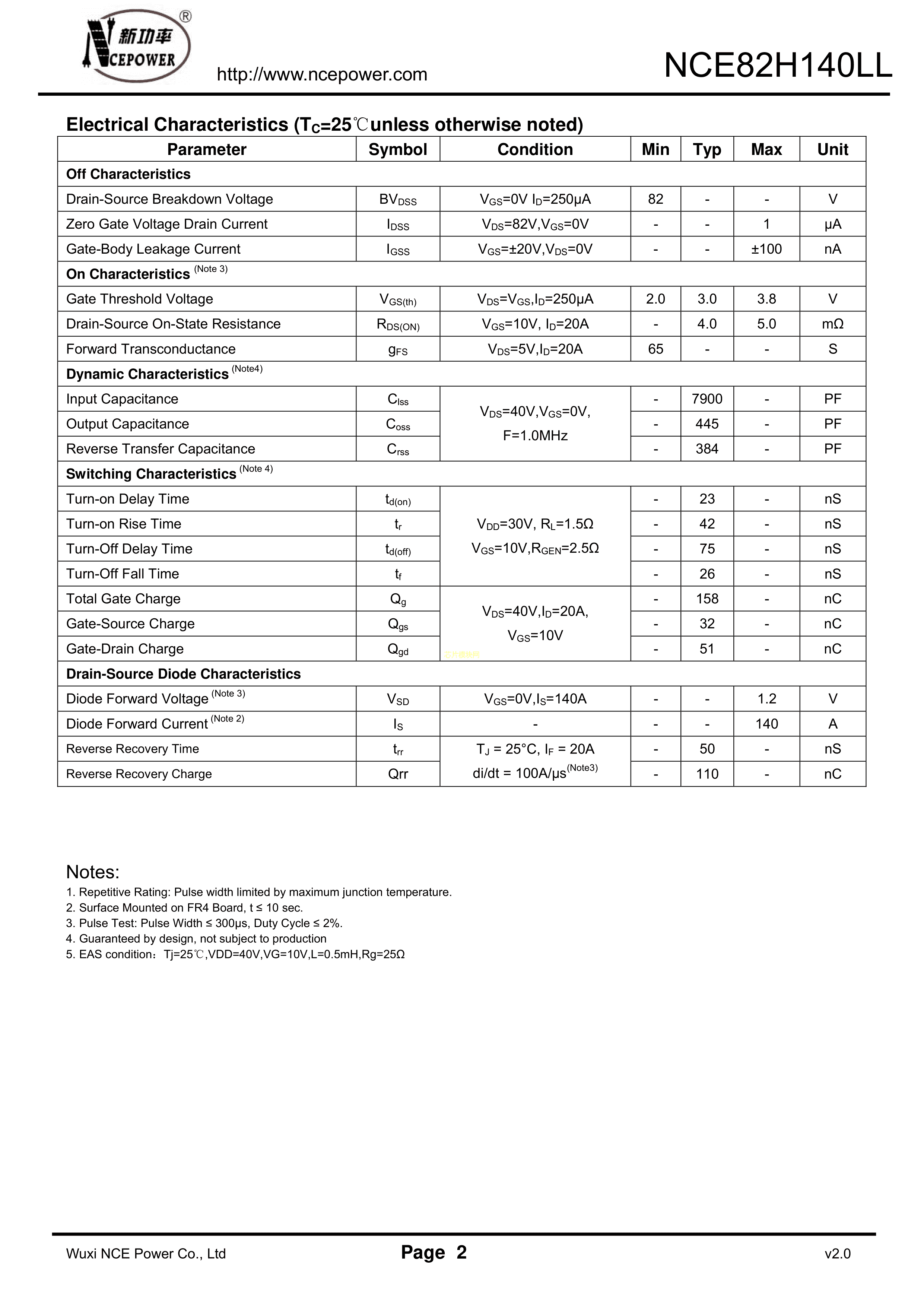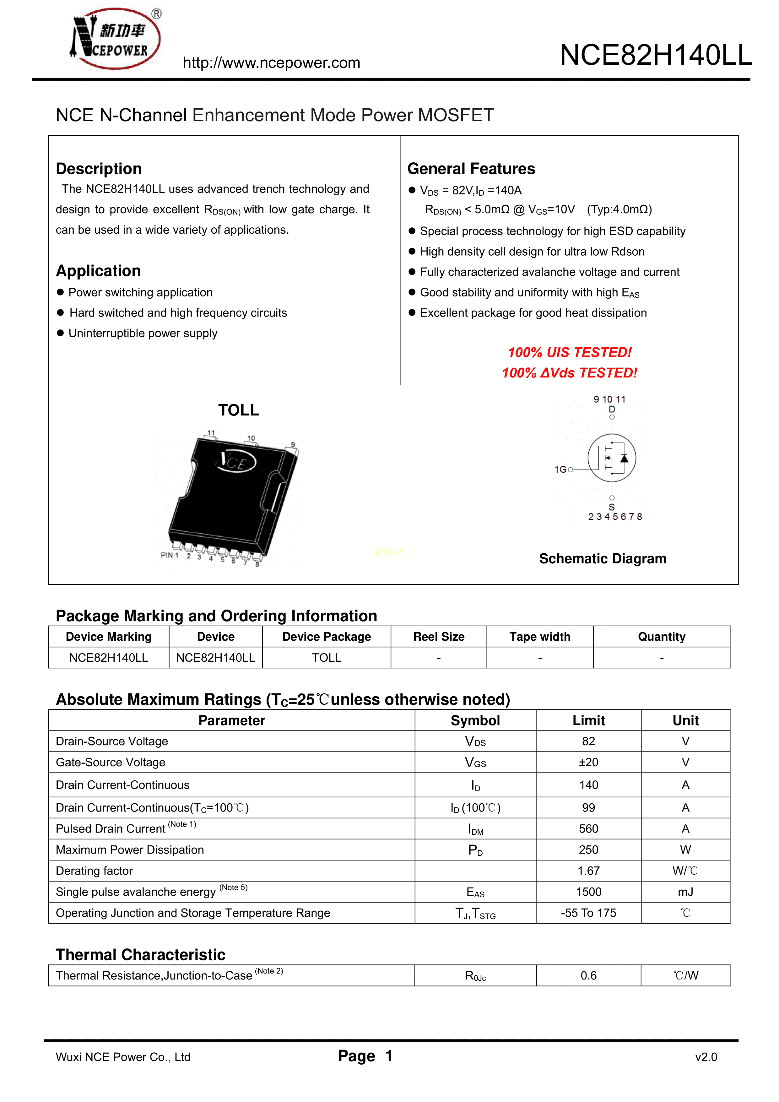 NCE82H140LLPDF规格书,中英文下载