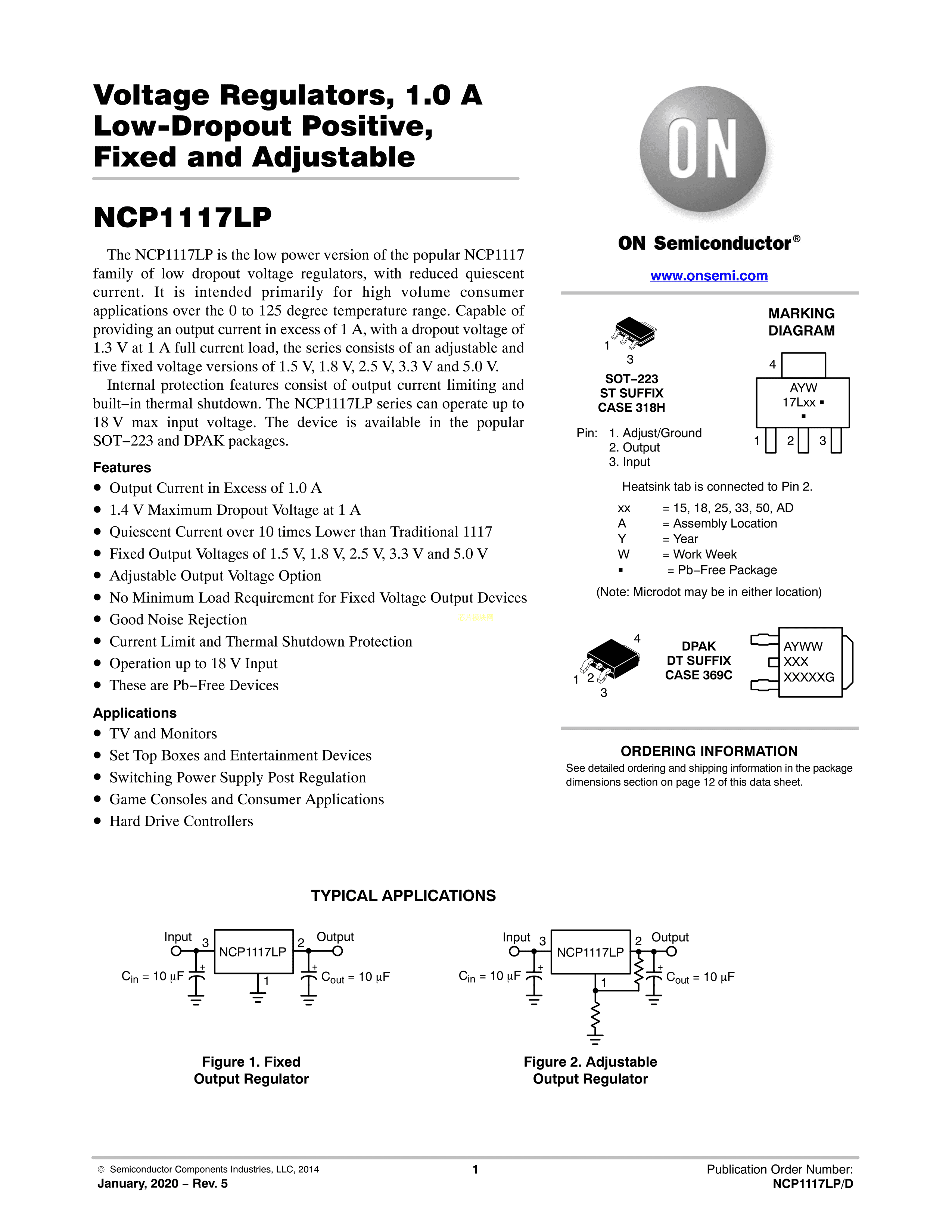 NCP1117LPST15T3G数据手册SOT-223封装onsemi(安森美)PDF规格书,中英文