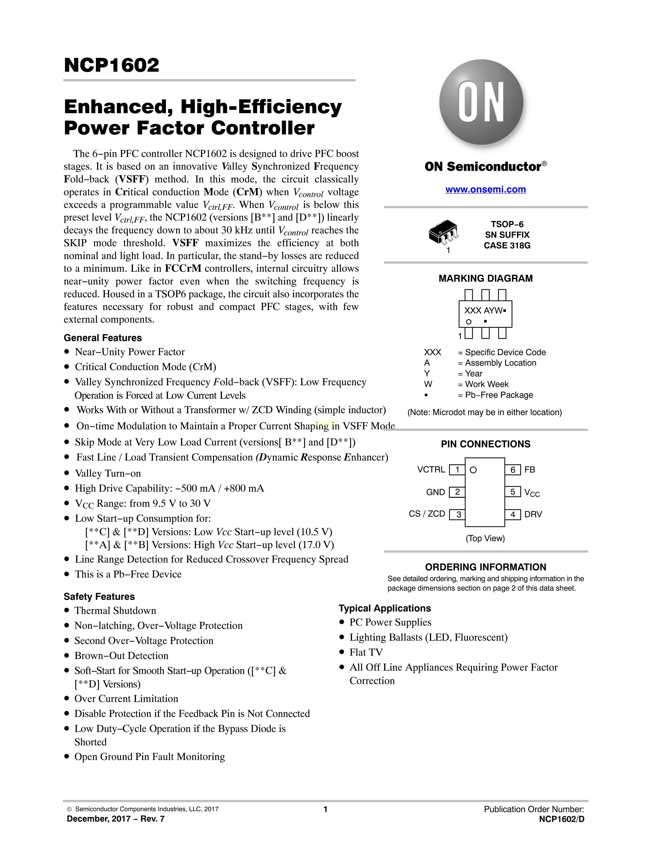NCP1602ABASNT1G数据手册TSOP-6封装onsemi(安森美)PDF规格书,中英文下载