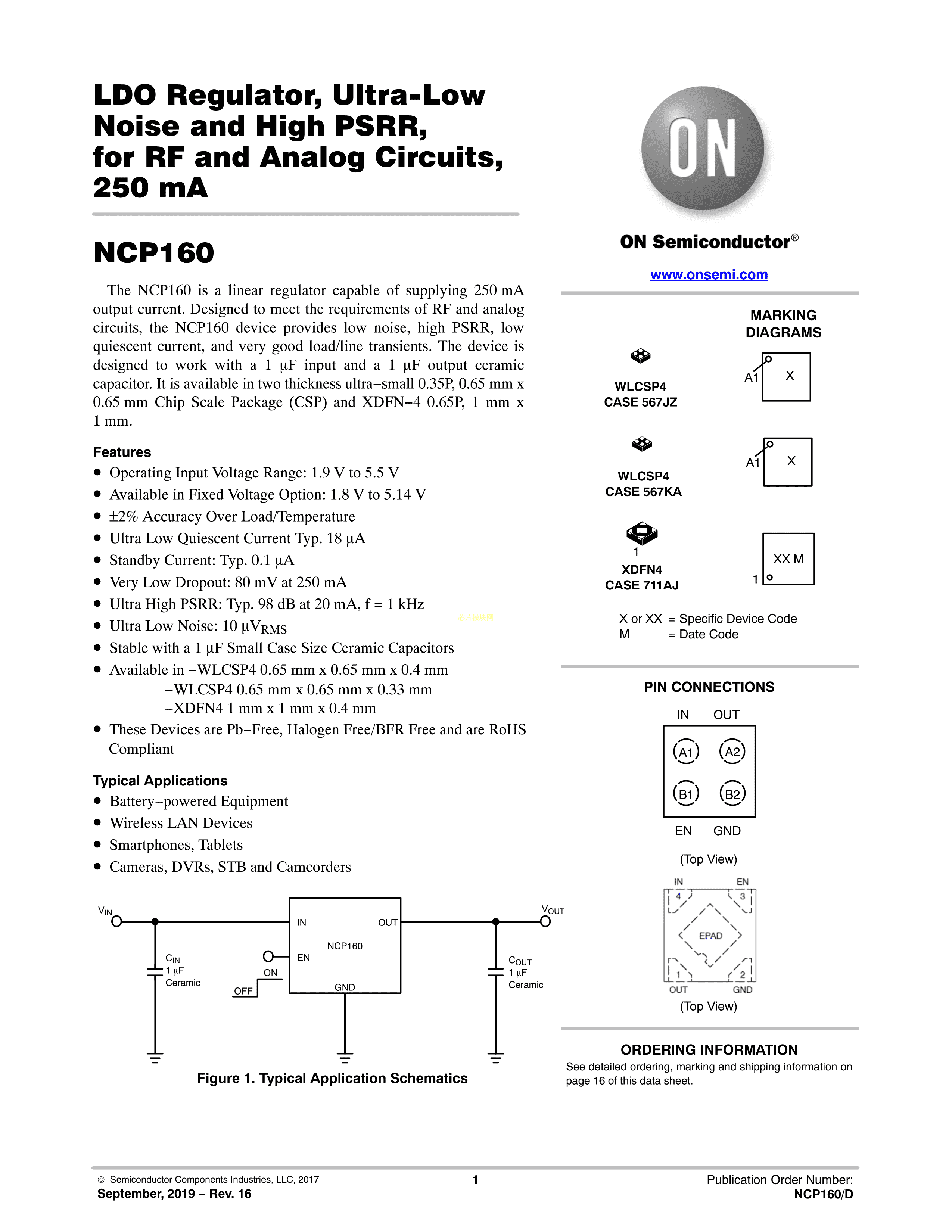 NCP160AMX180TBG数据手册XDFN-4封装onsemi(安森美)PDF规格书,中英文下载