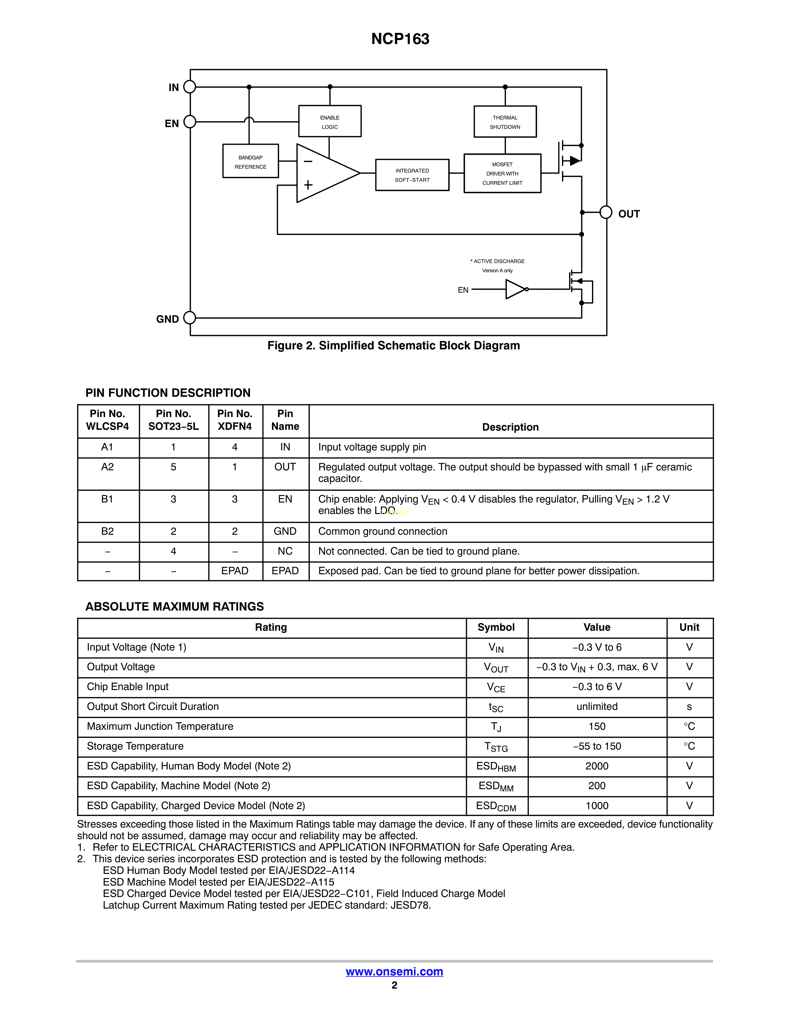 NCP163AFCT285T2G数据手册WLCSP4封装onsemi(安森美)PDF规格书,中英文下