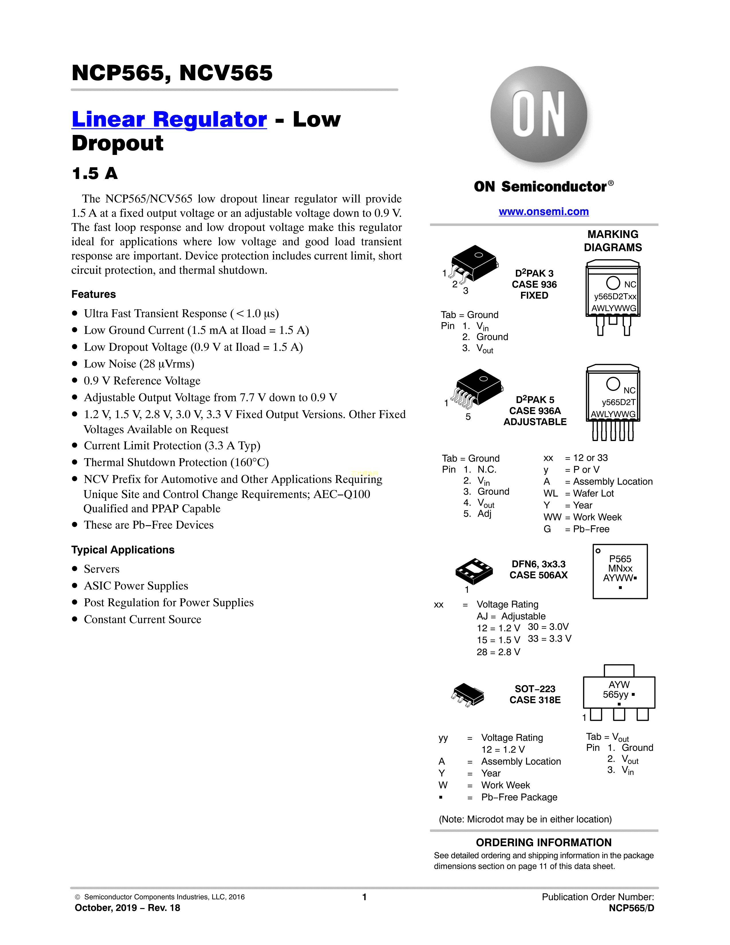 NCP565ST12T3G数据手册SOT-223封装onsemi(安森美)PDF规格书,中英文下载