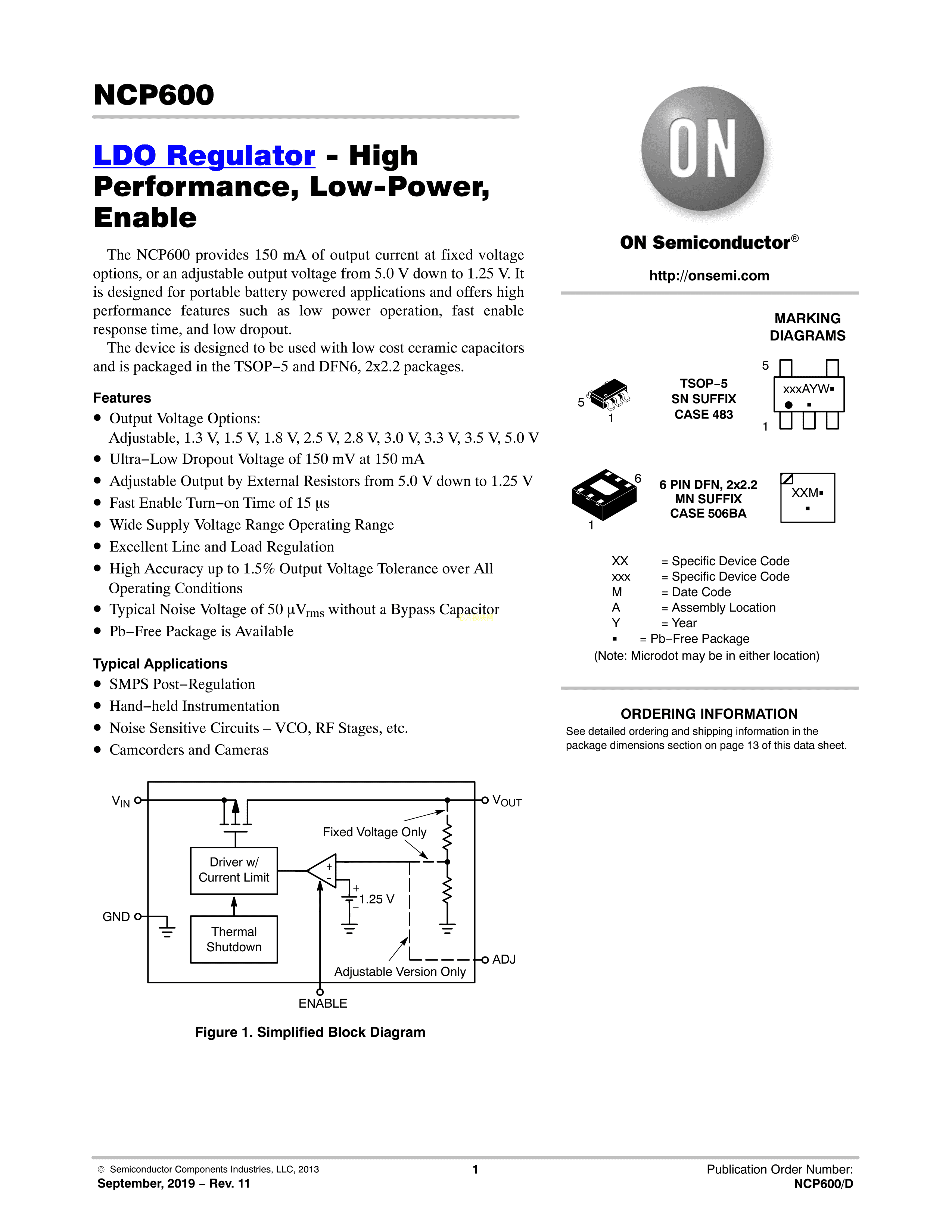 NCP600SN500T1G数据手册TSOP-5封装onsemi(安森美)PDF规格书,中英文下载