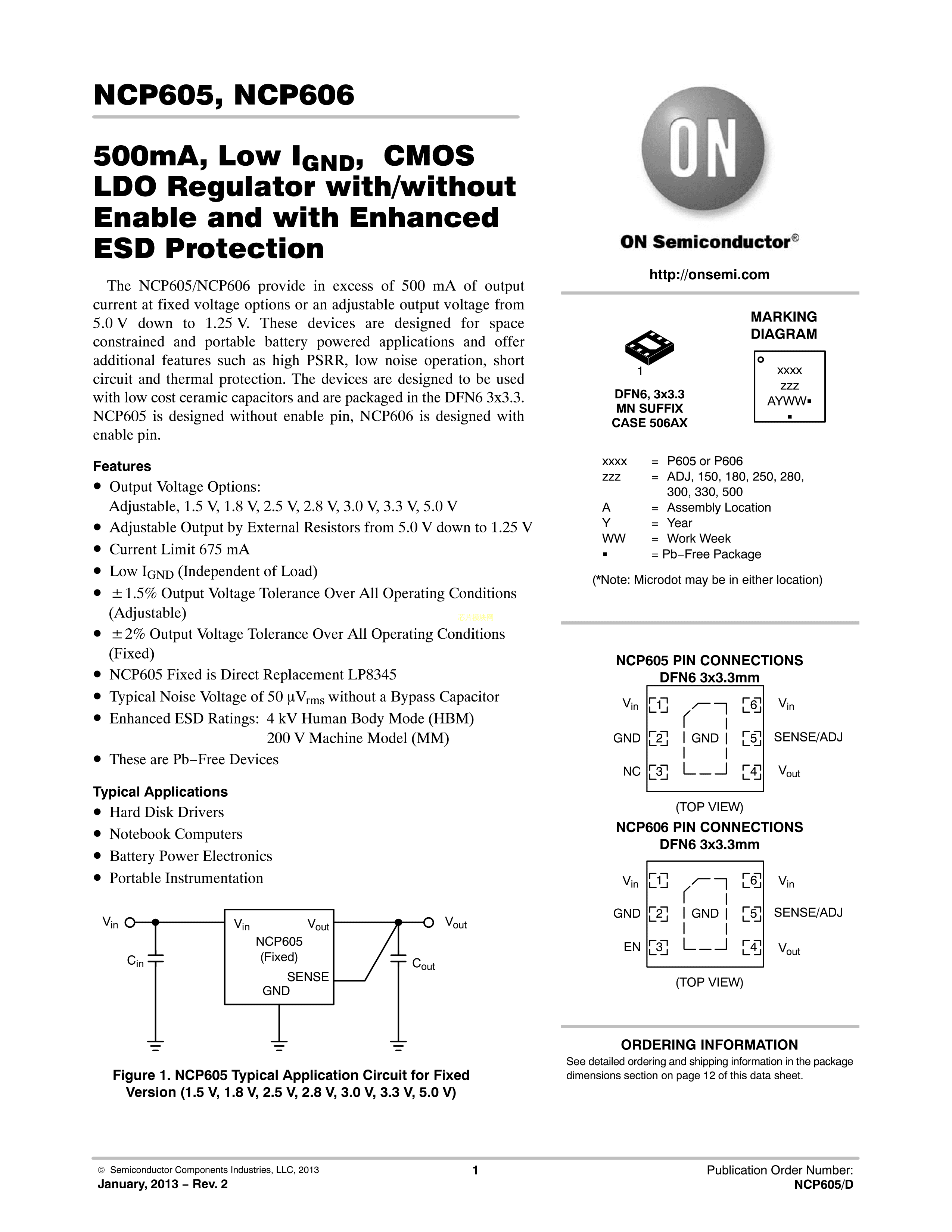 NCP606MN18T2G数据手册DFN-6封装onsemi(安森美)PDF规格书,中英文下载