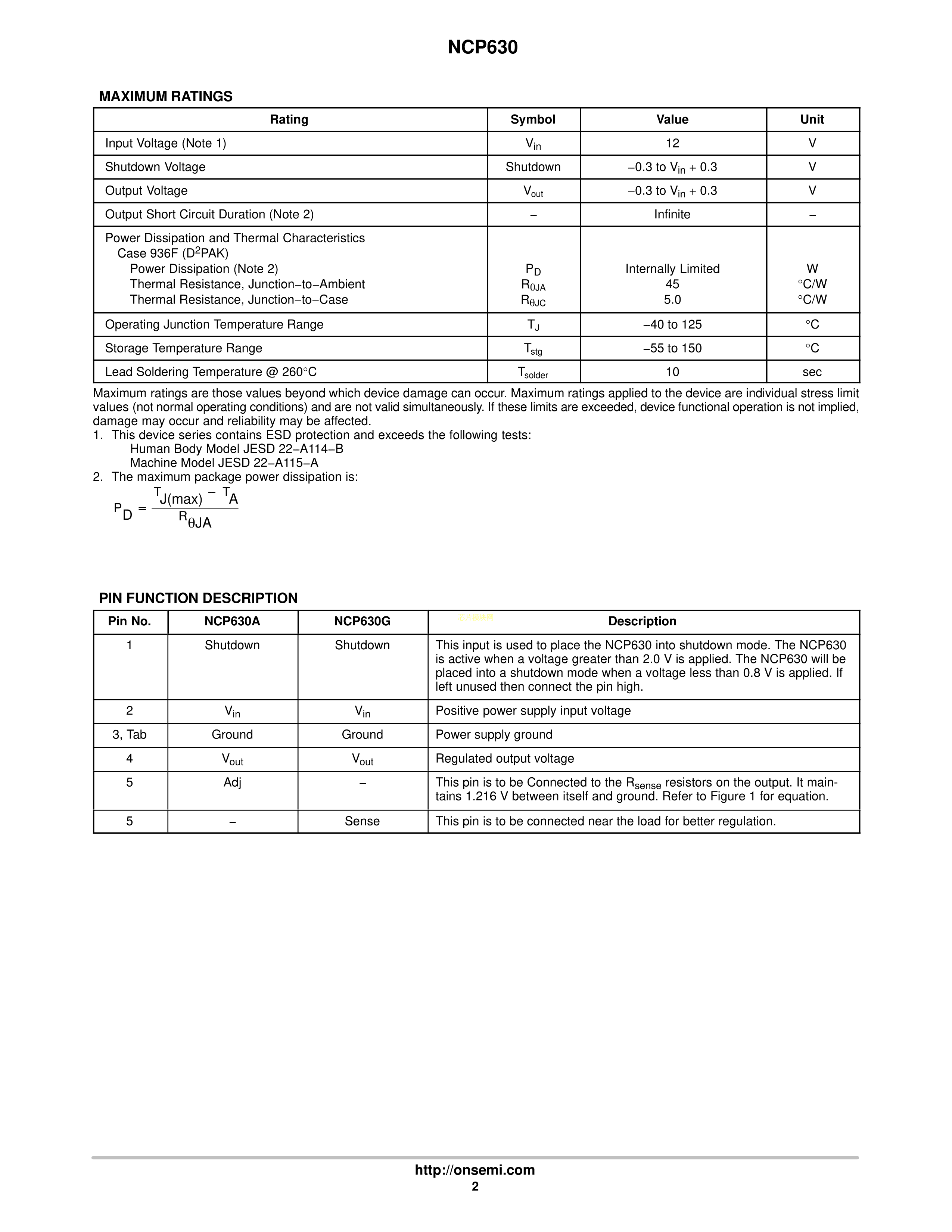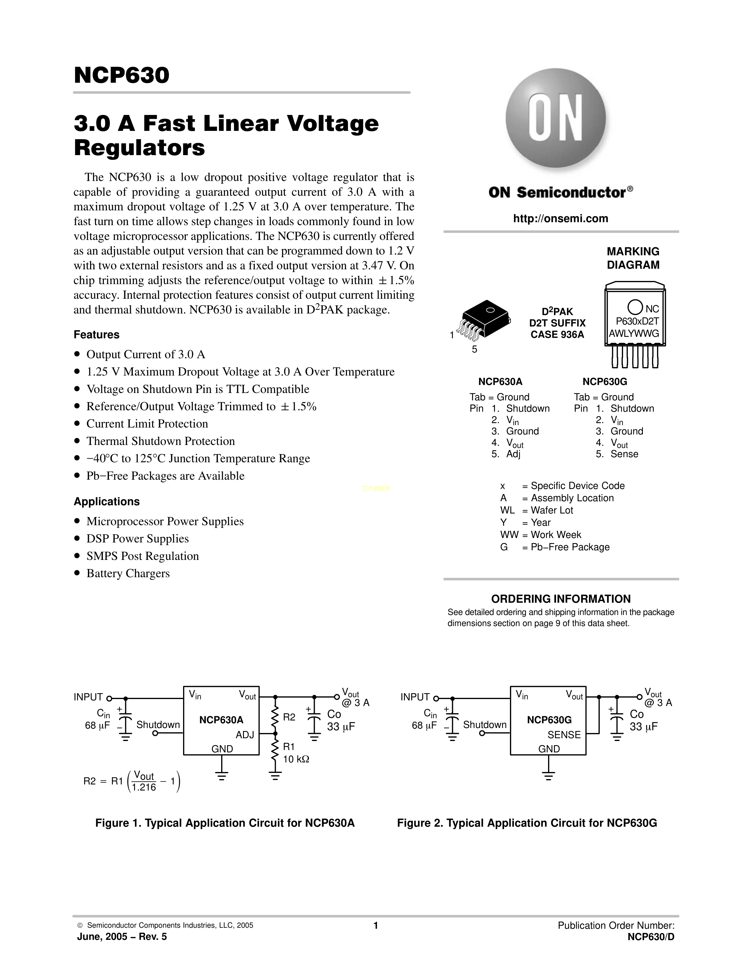 NCP630AD2TG数据手册D2PAK-5封装onsemi(安森美)PDF规格书,中英文下载