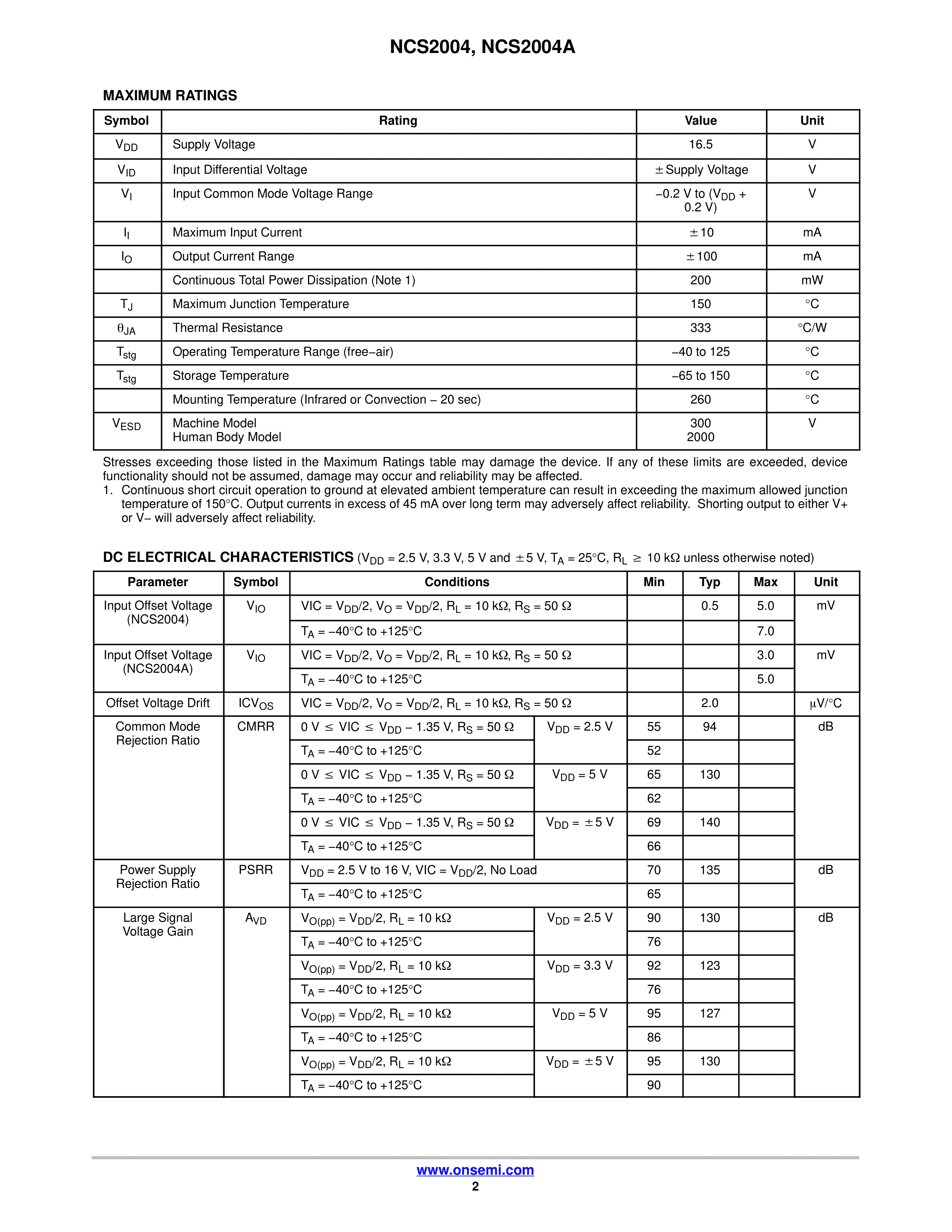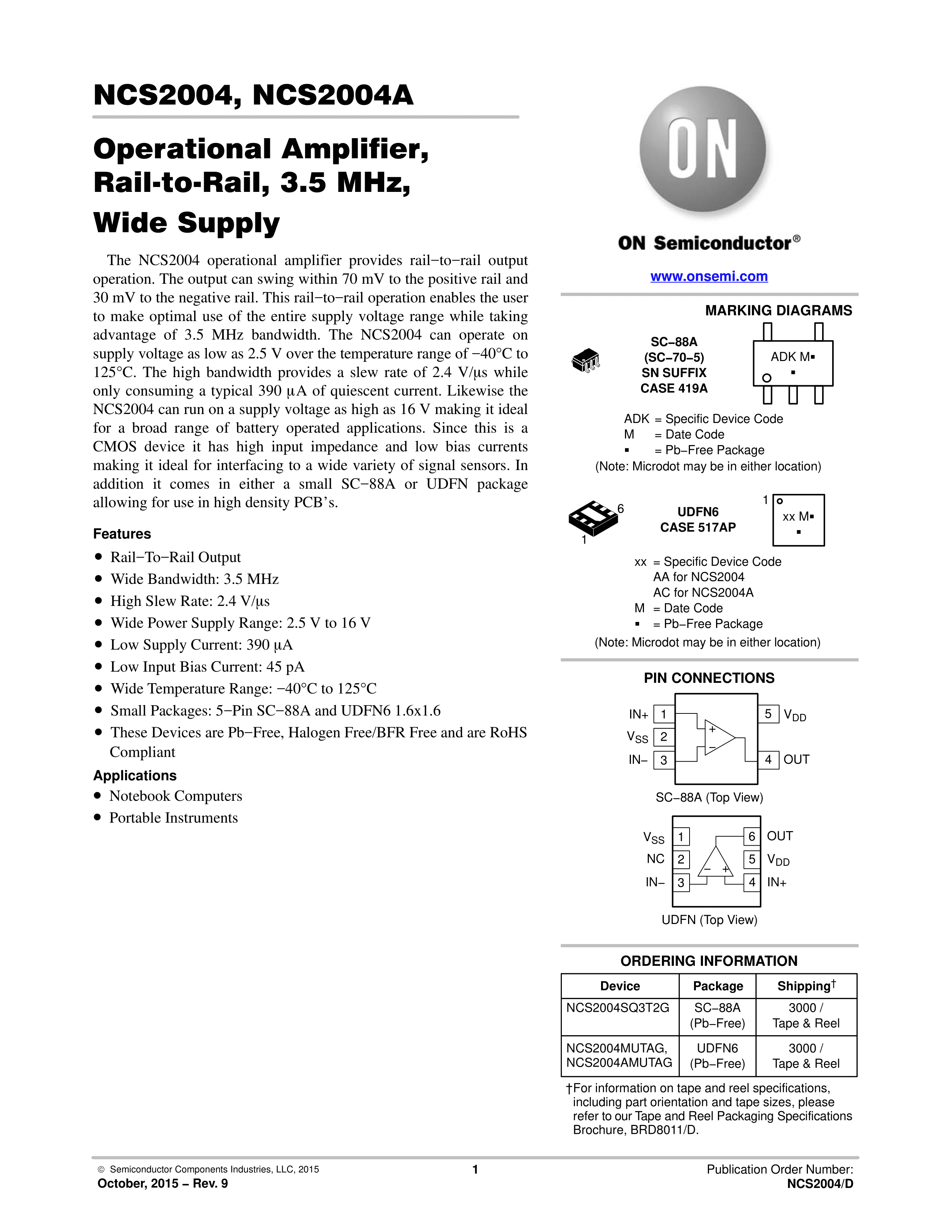 NCS2004AMUTAG数据手册UDFN-6封装onsemi(安森美)PDF规格书,中英文下载