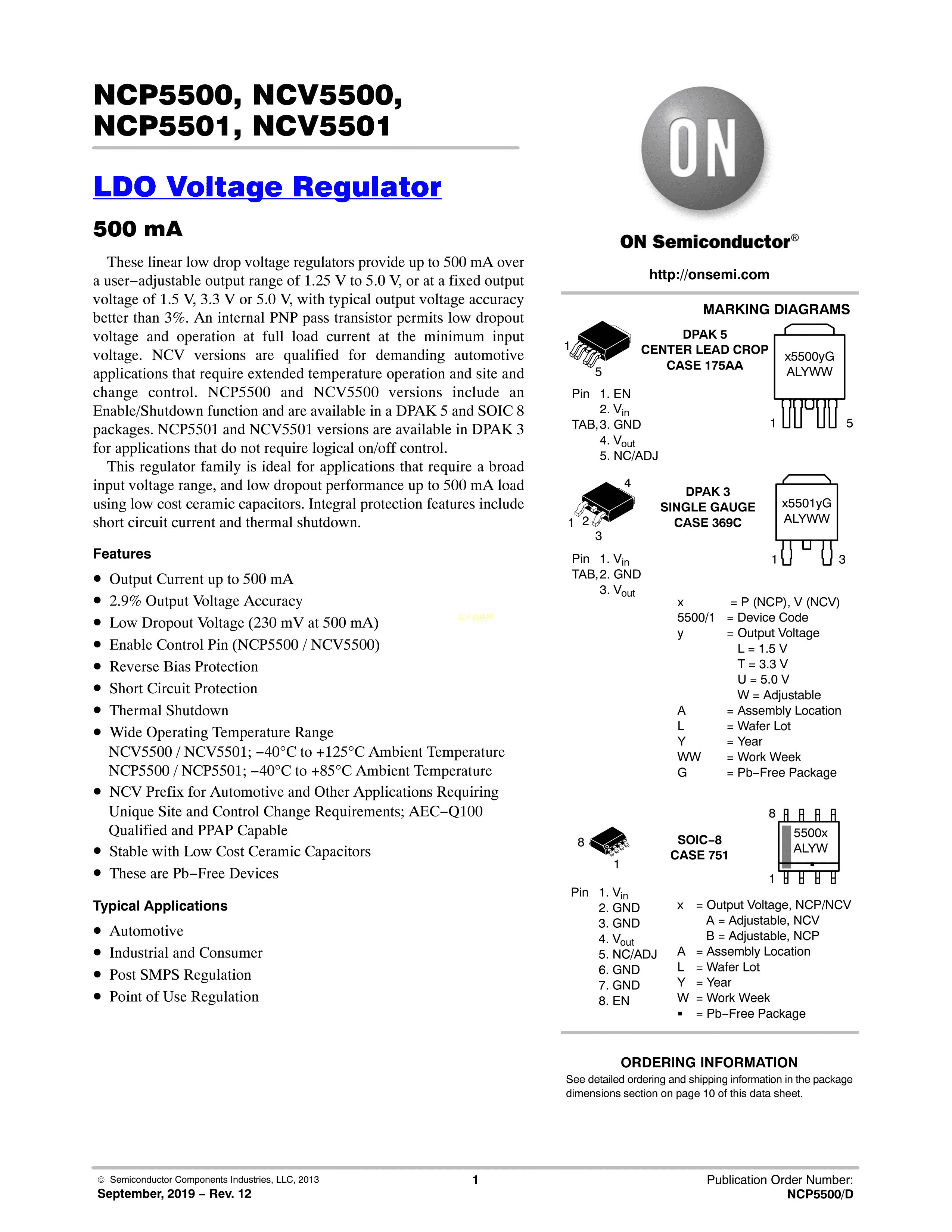 NCV5501DT50RKG数据手册DPAK-3封装onsemi(安森美)PDF规格书,中英文下载