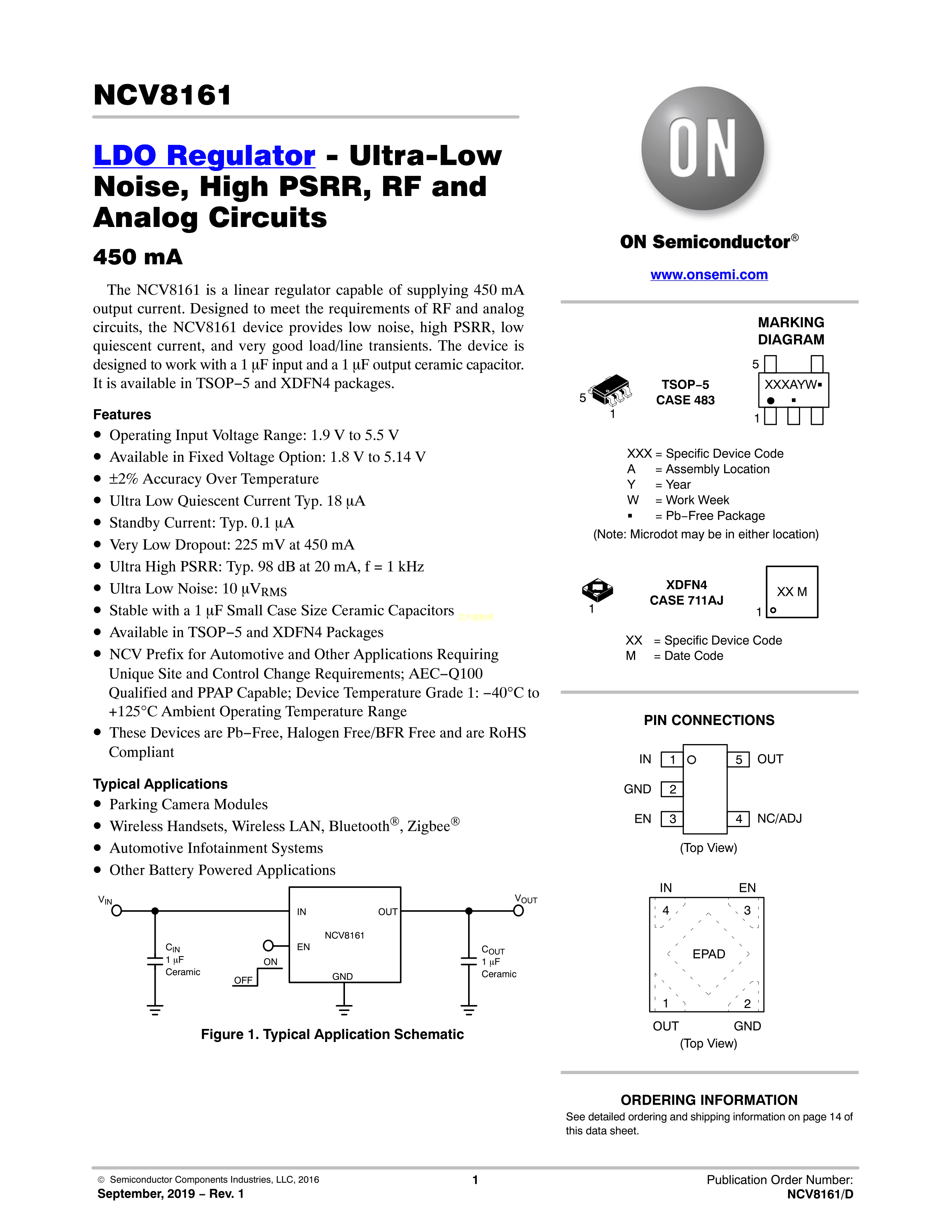NCV8161AMX280TBG数据手册XDFN-4封装onsemi(安森美)PDF规格书,中英文下