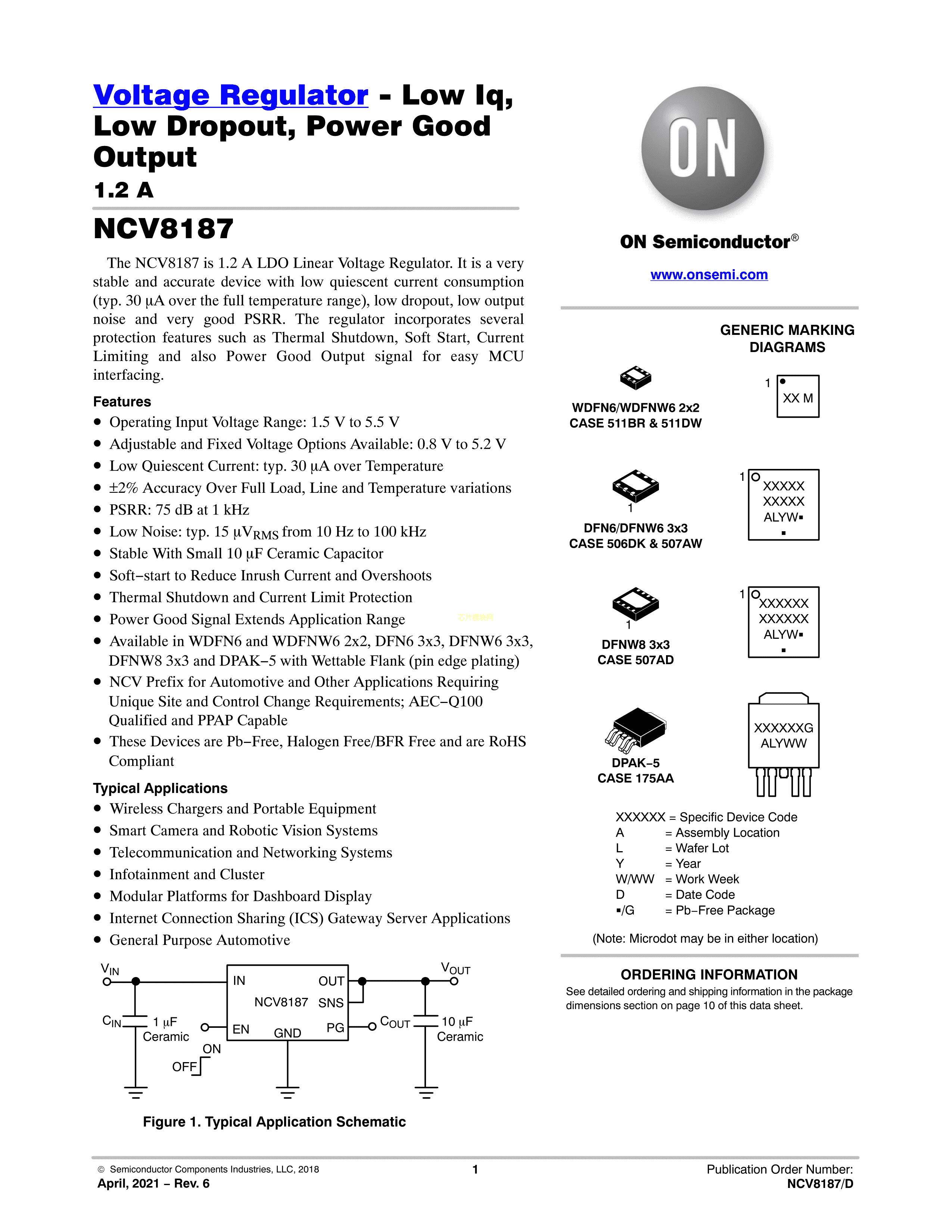 NCV8187AMT330TAG数据手册WDFN-6 (2x2)封装onsemi(安森美)PDF规格