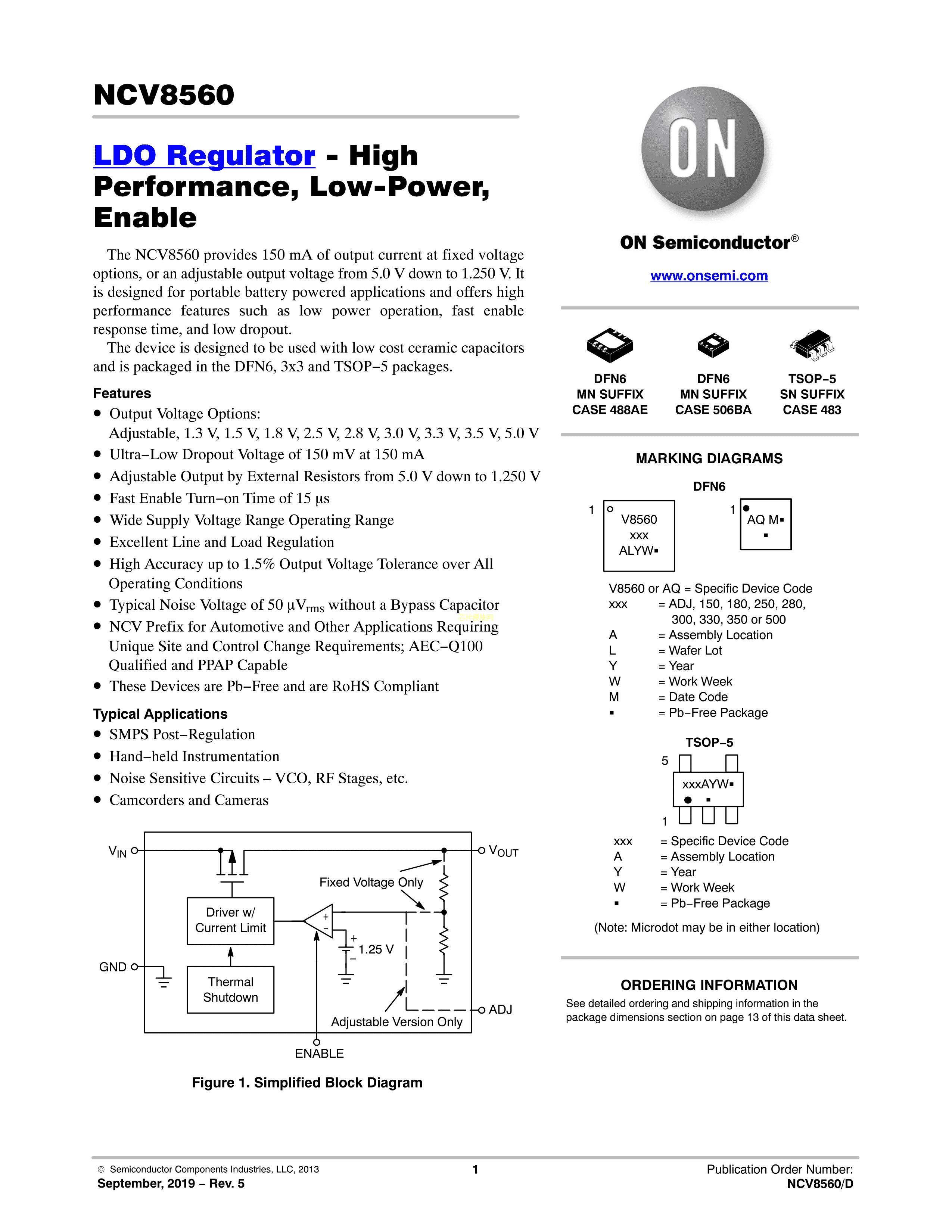 NCV8560MN500R2G数据手册DFN-6(3x3)封装onsemi(安森美)PDF规格书,中