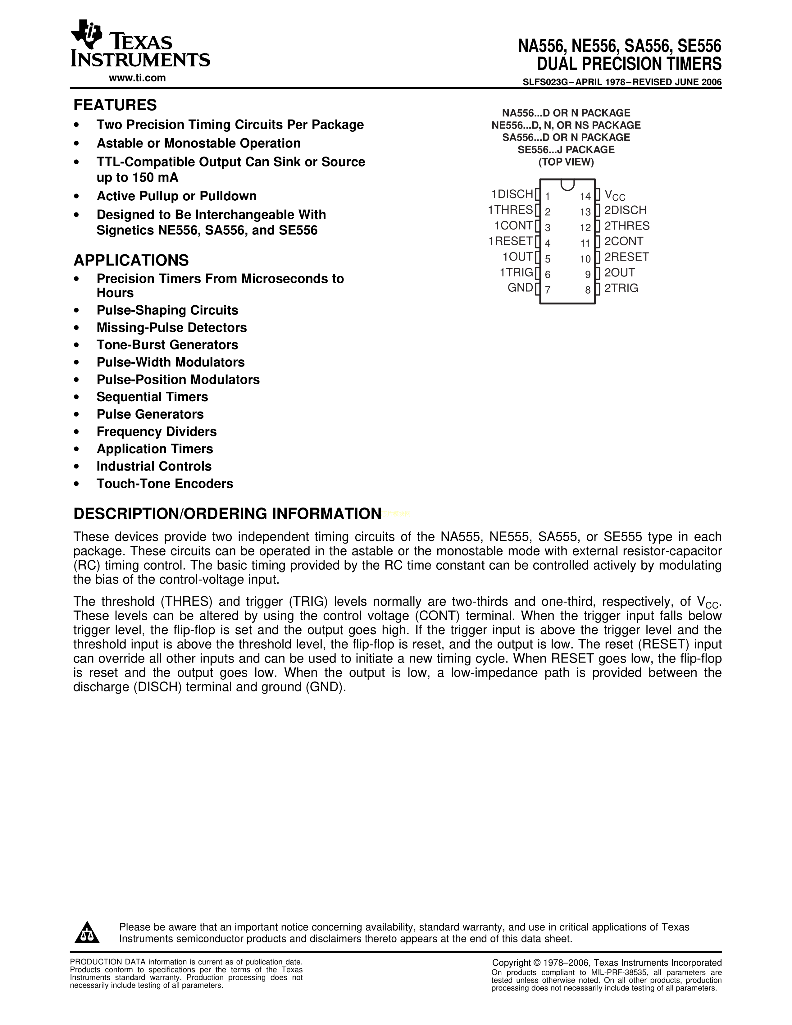 NE556DR数据手册SOIC-14_150mil封装TI(德州仪器)PDF规格书,中英文下载