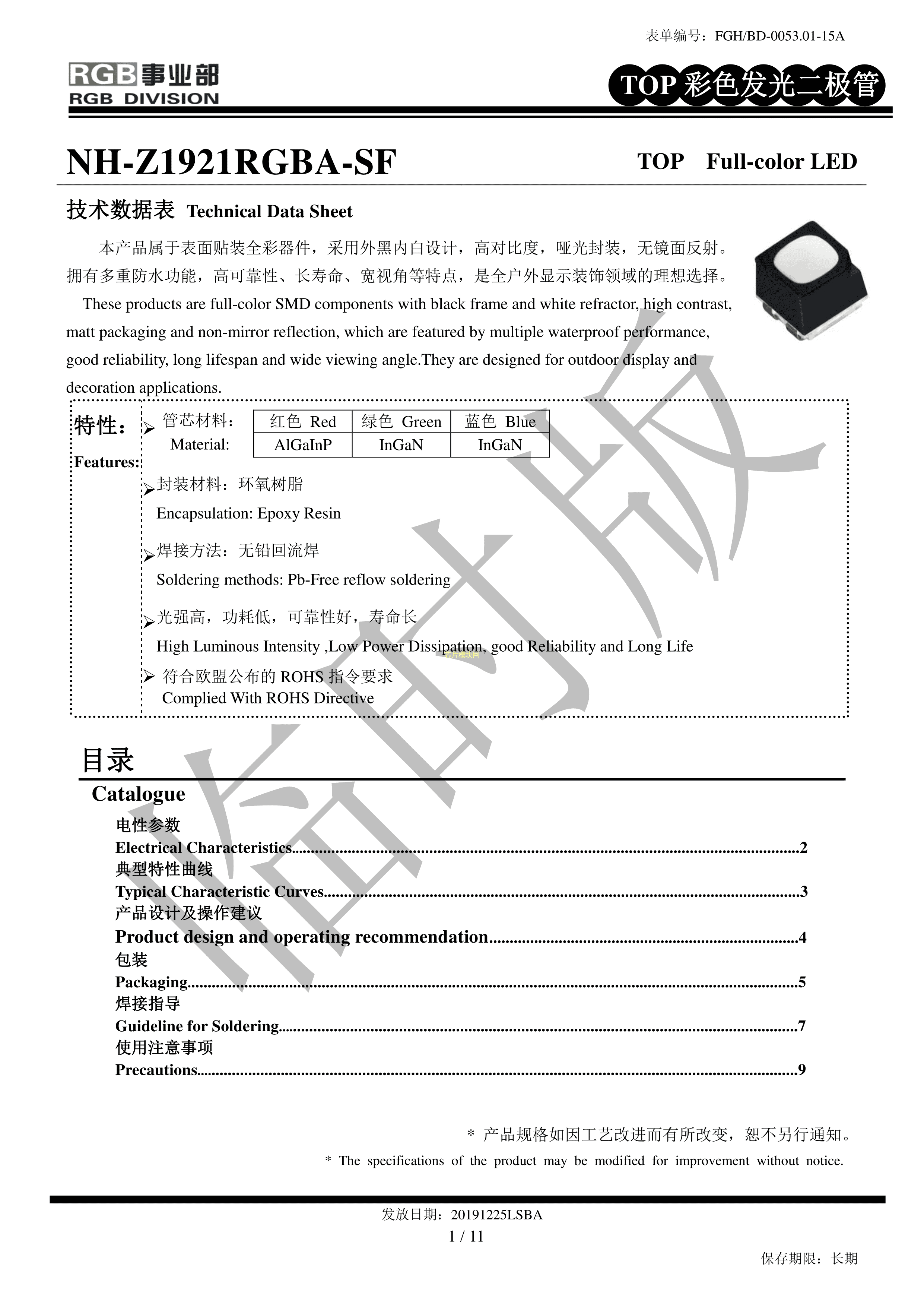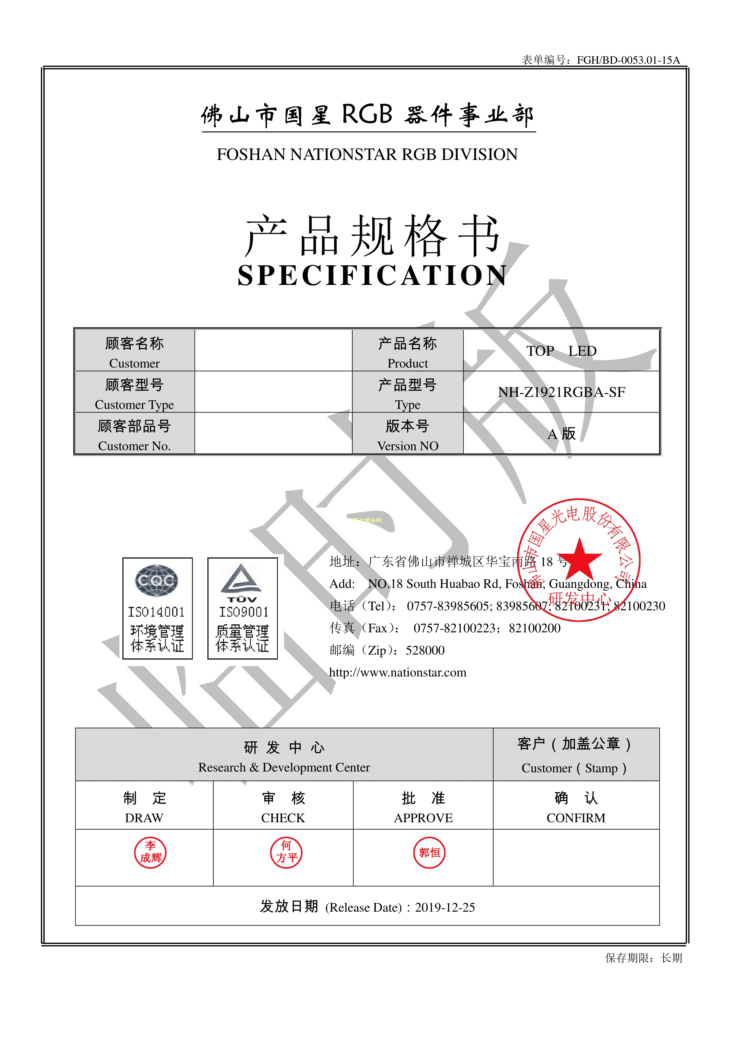 NH-Z1921RGBA-SF数据手册SMD2.15x2.05x1.9mm封装国星光电PDF规格书,中英文下载