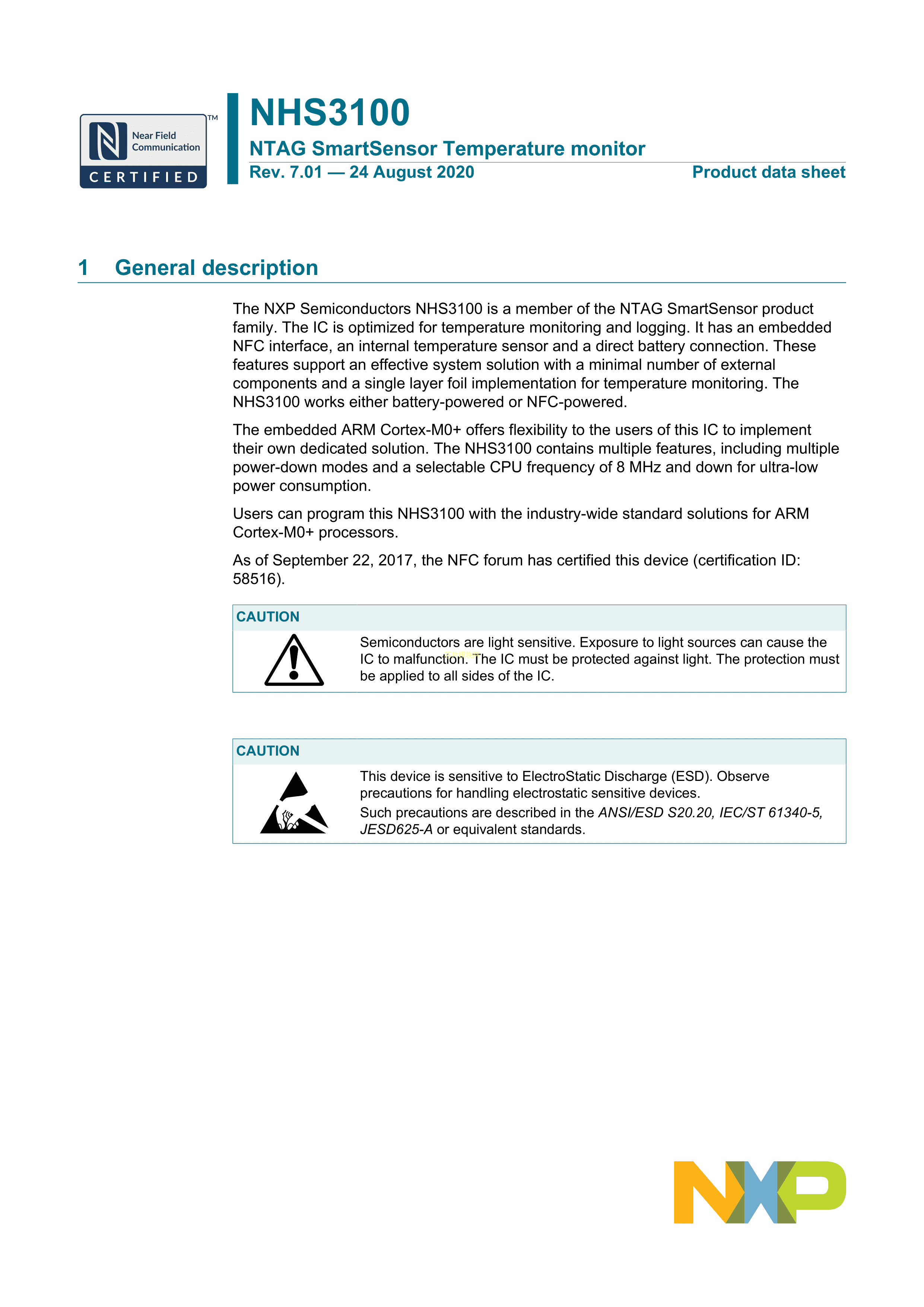 NHS3100-A1Z数据手册HVQFN-24(4x4)封装NXP(恩智浦)PDF规格书,中英文下载