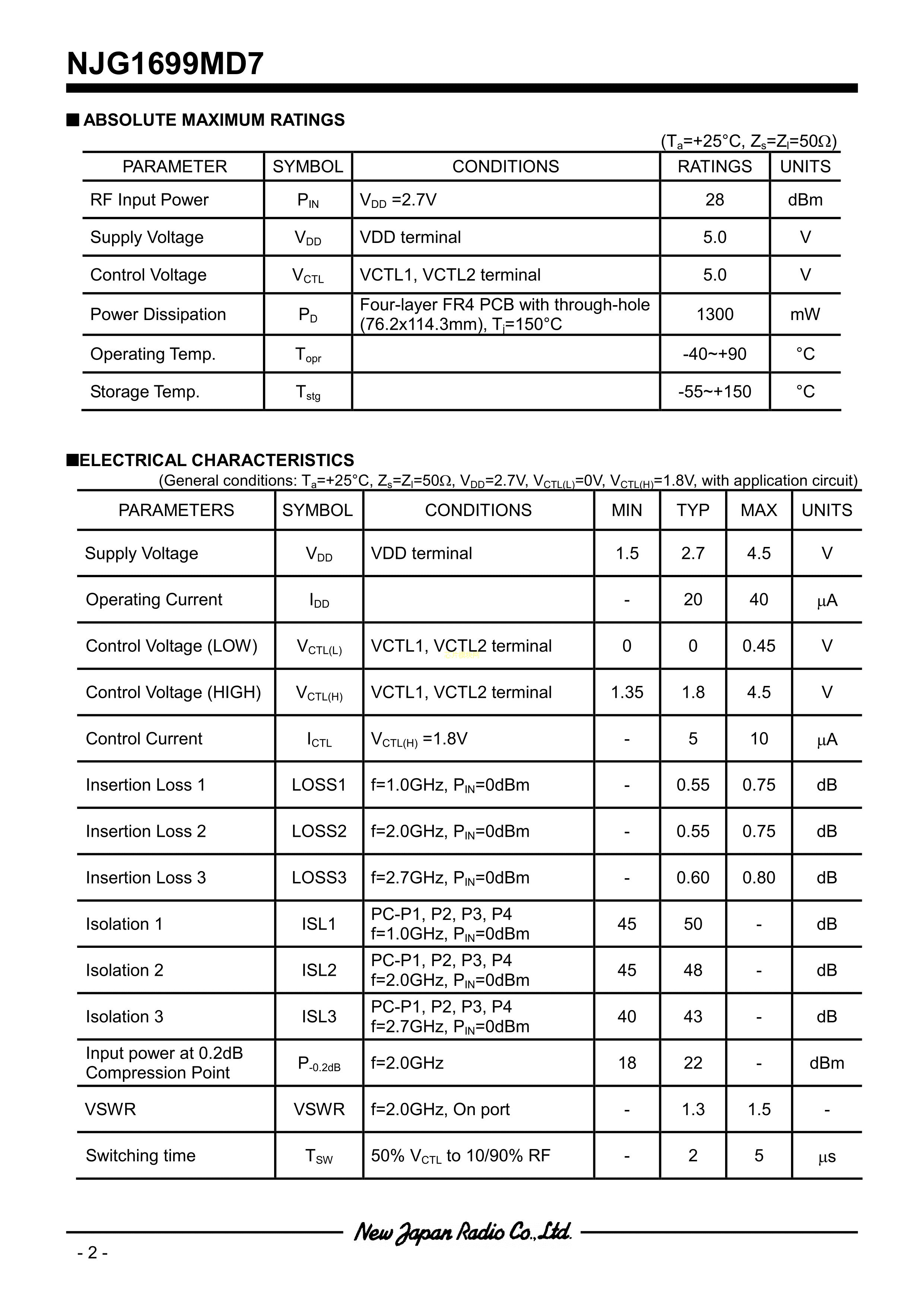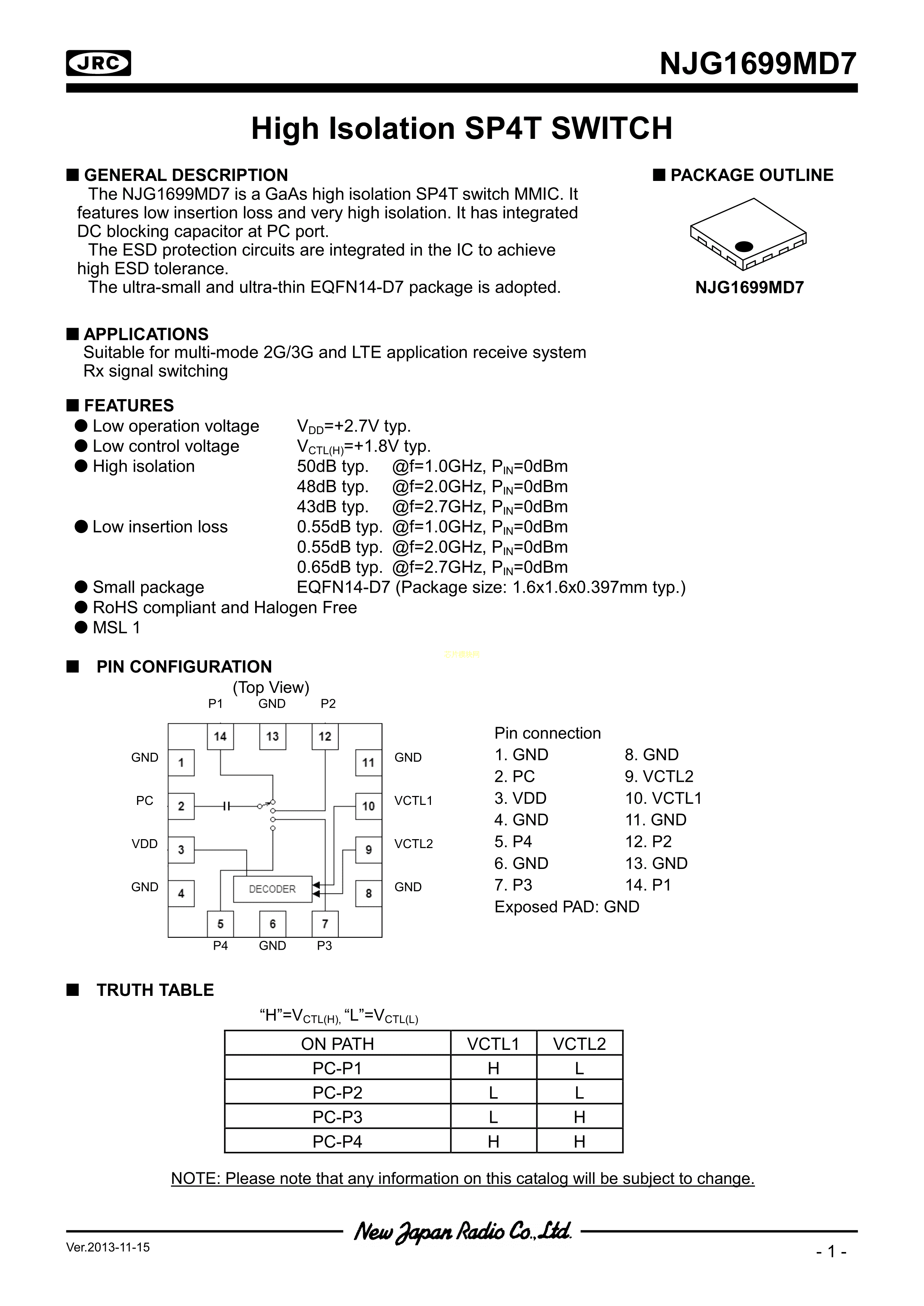 NJG1699MD7-TE1数据手册EQFN14-D7封装JRCPDF规格书,中英文下载