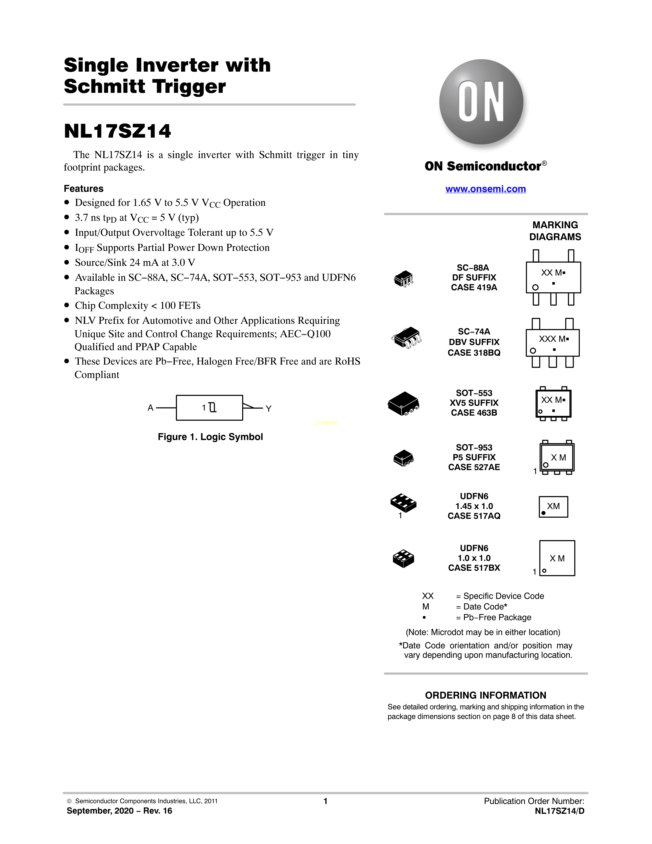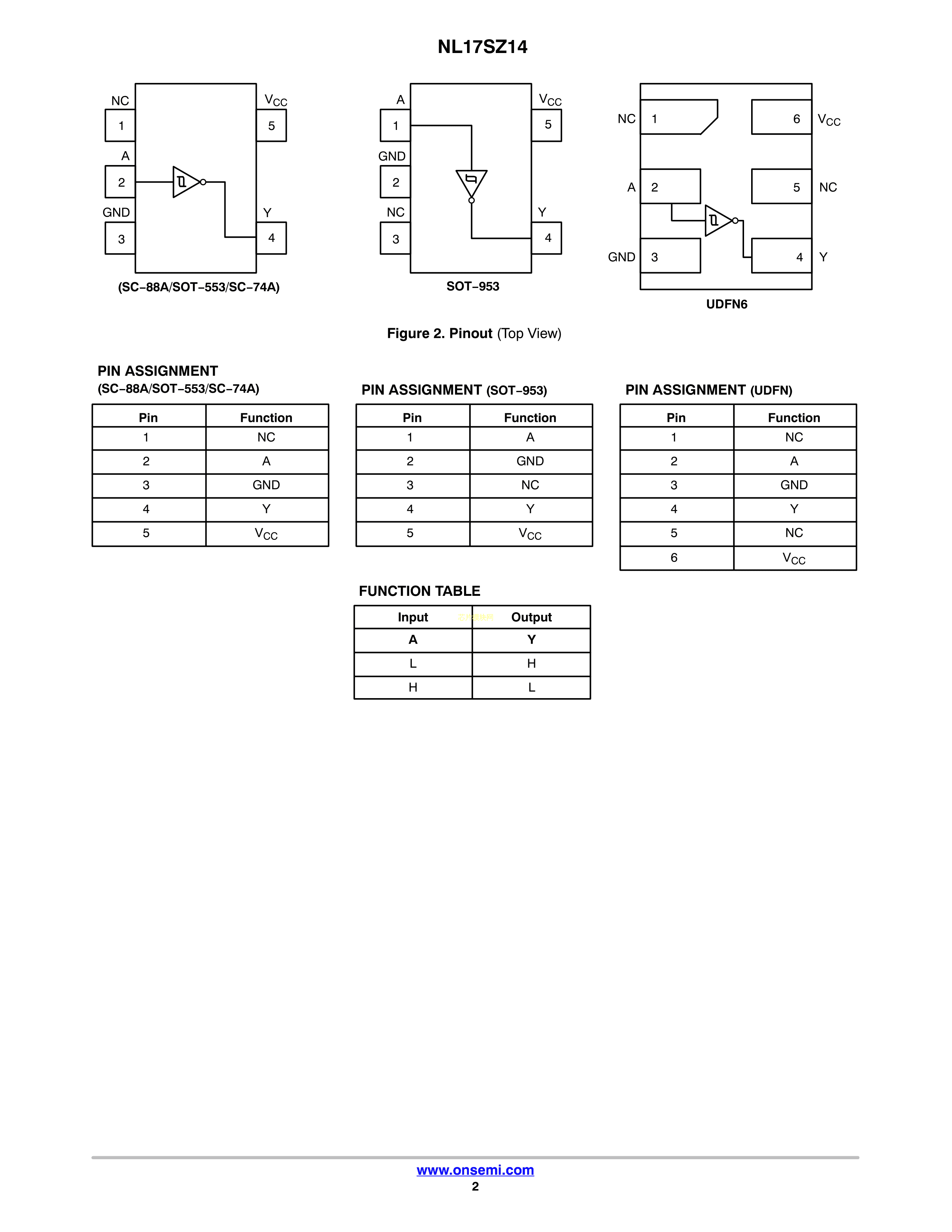 NL17SZ14DBVT1G数据手册SC-74A-5封装onsemi(安森美)PDF规格书,中英文下