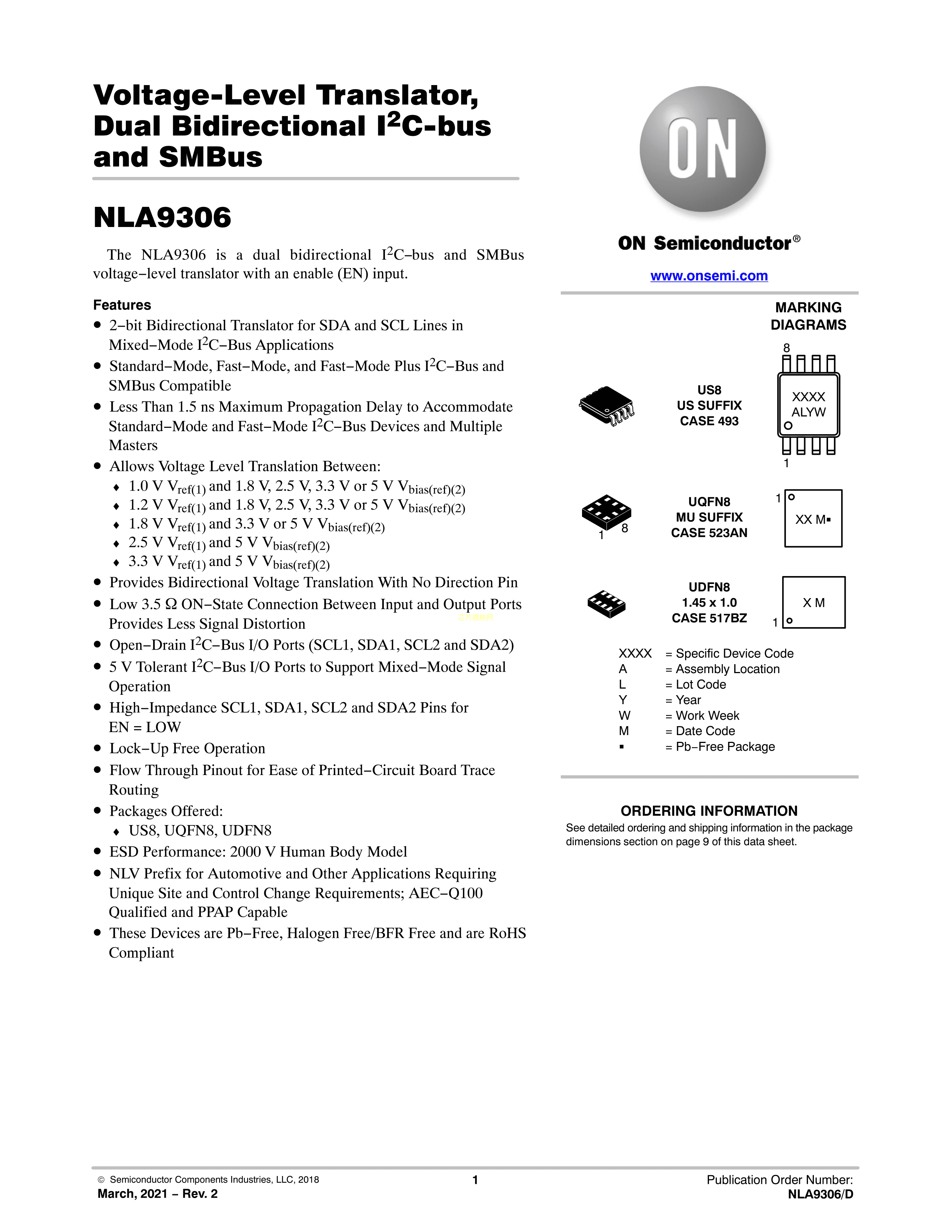 NLA9306MU3TCG数据手册UDFN-8封装onsemi(安森美)PDF规格书,中英文下载