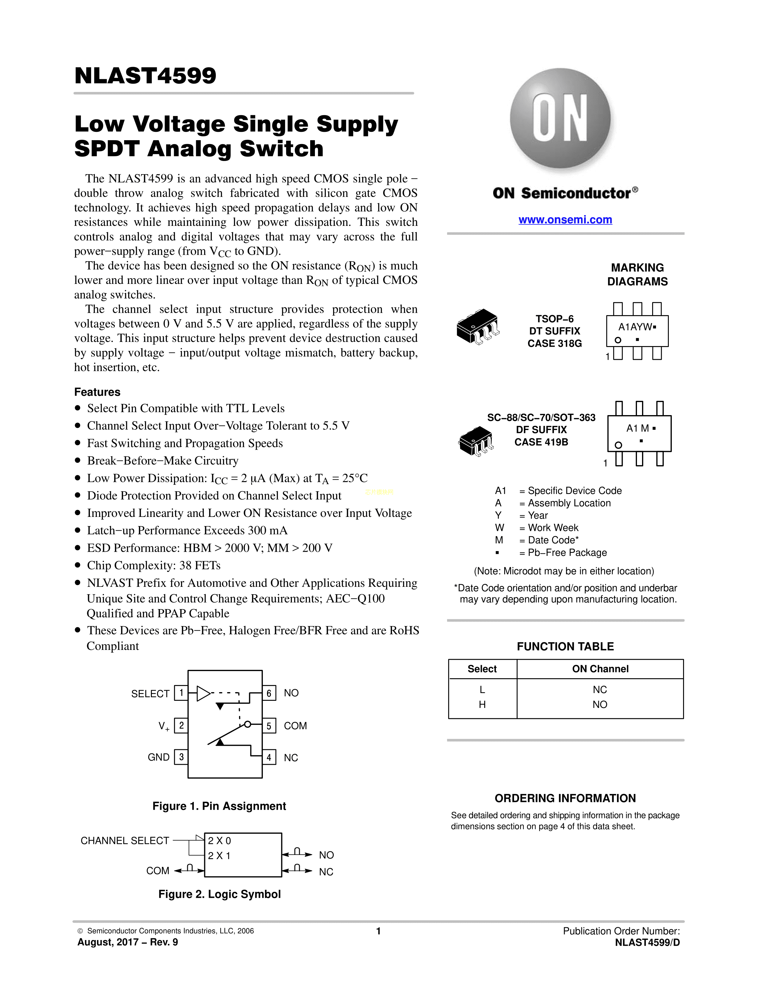 NLAST4599DFT2G数据手册SC-70-6(SOT-363)封装onsemi(安森美)PDF