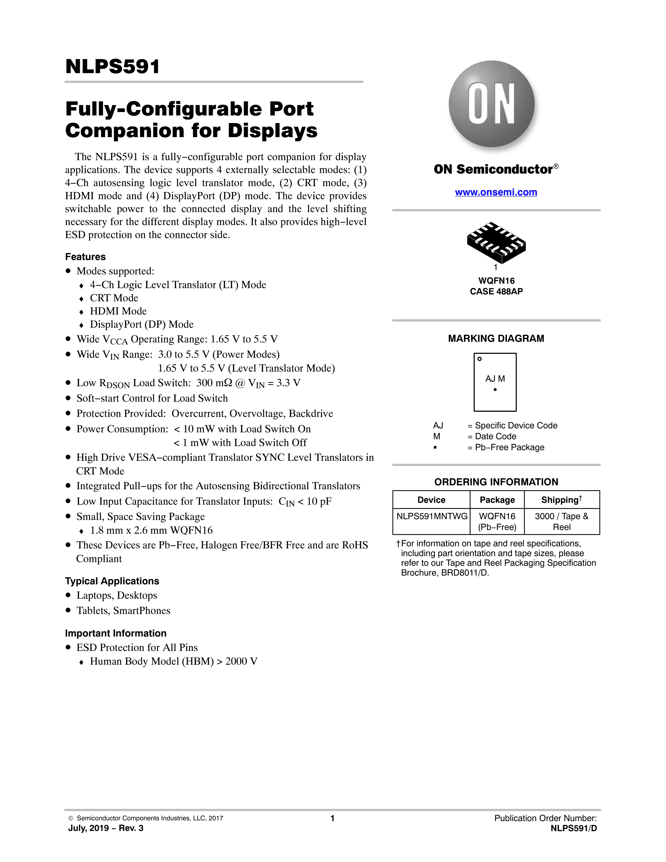 NLPS591MNTWG数据手册WQFN-16封装onsemi(安森美)PDF规格书,中英文下载
