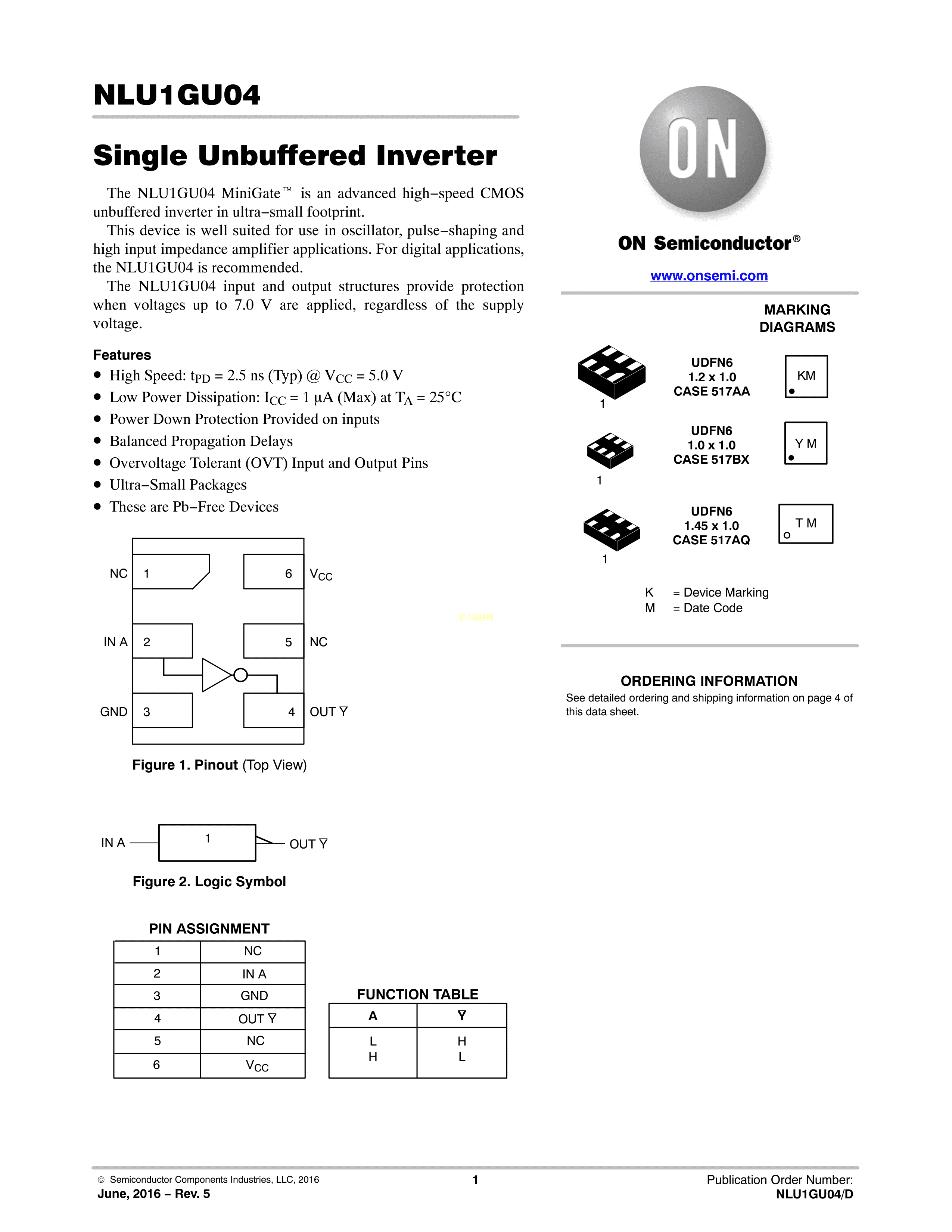 NLU1GU04CMUTCG数据手册UDFN-6封装onsemi(安森美)PDF规格书,中英文下载