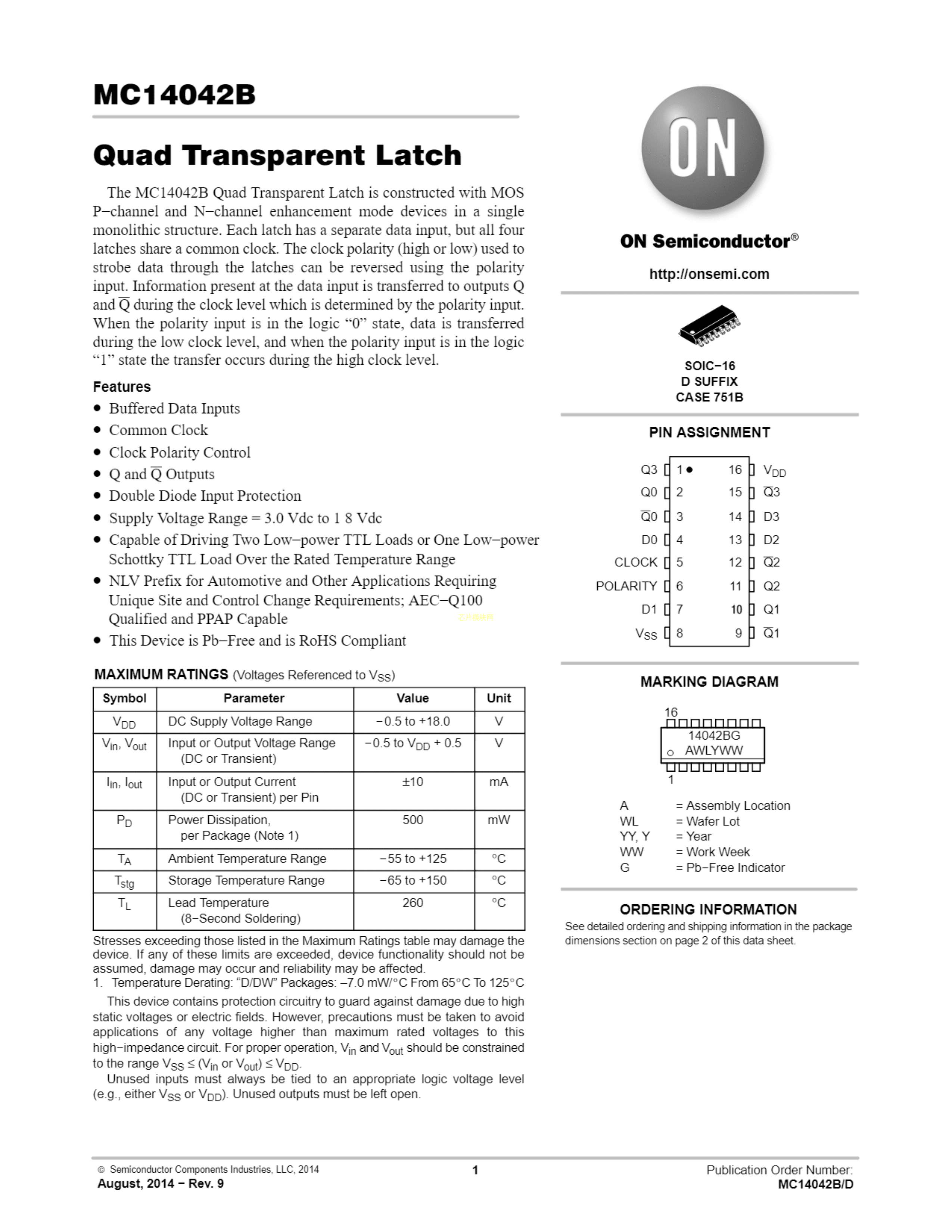 NLV14042BDG数据手册SOIC-16封装onsemi(安森美)PDF规格书,中英文下载