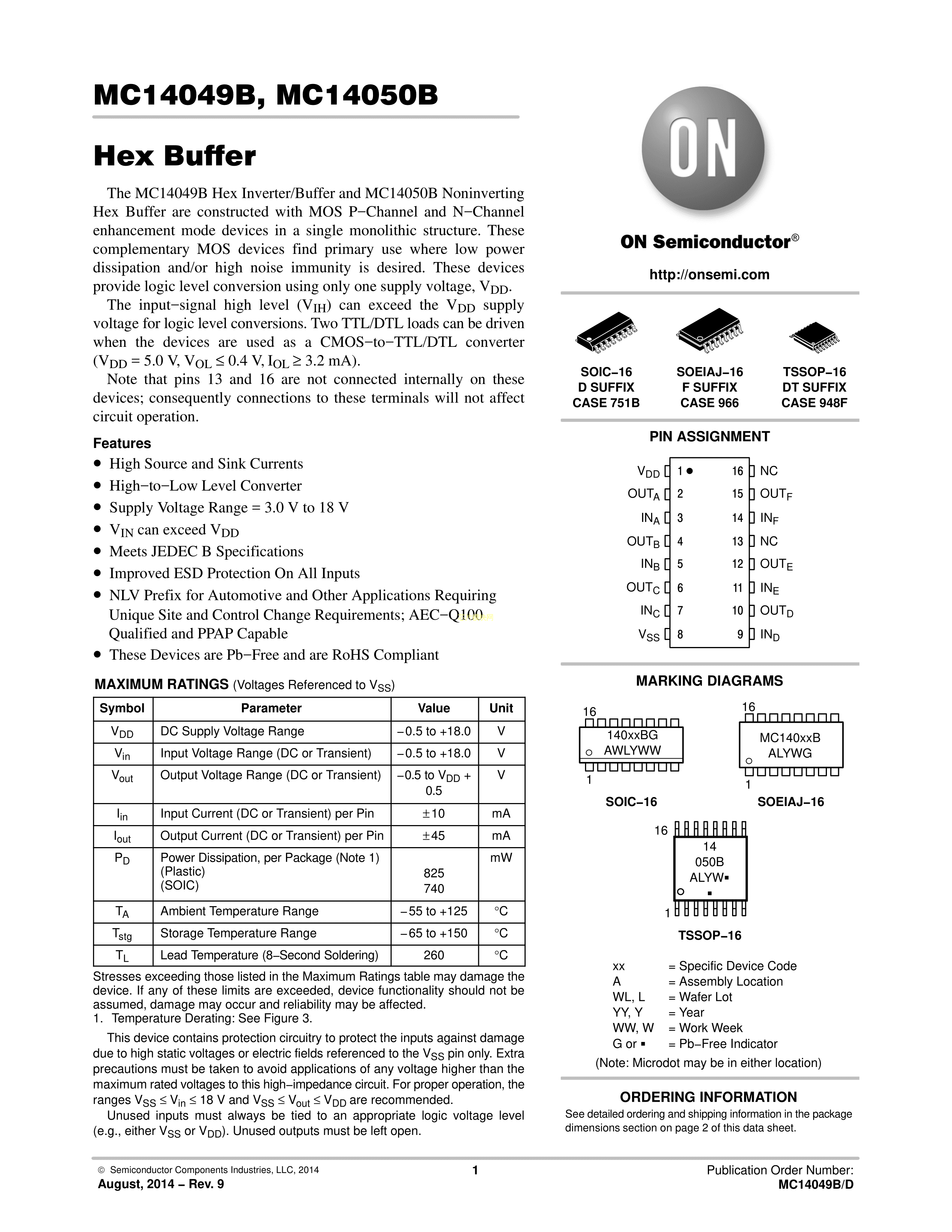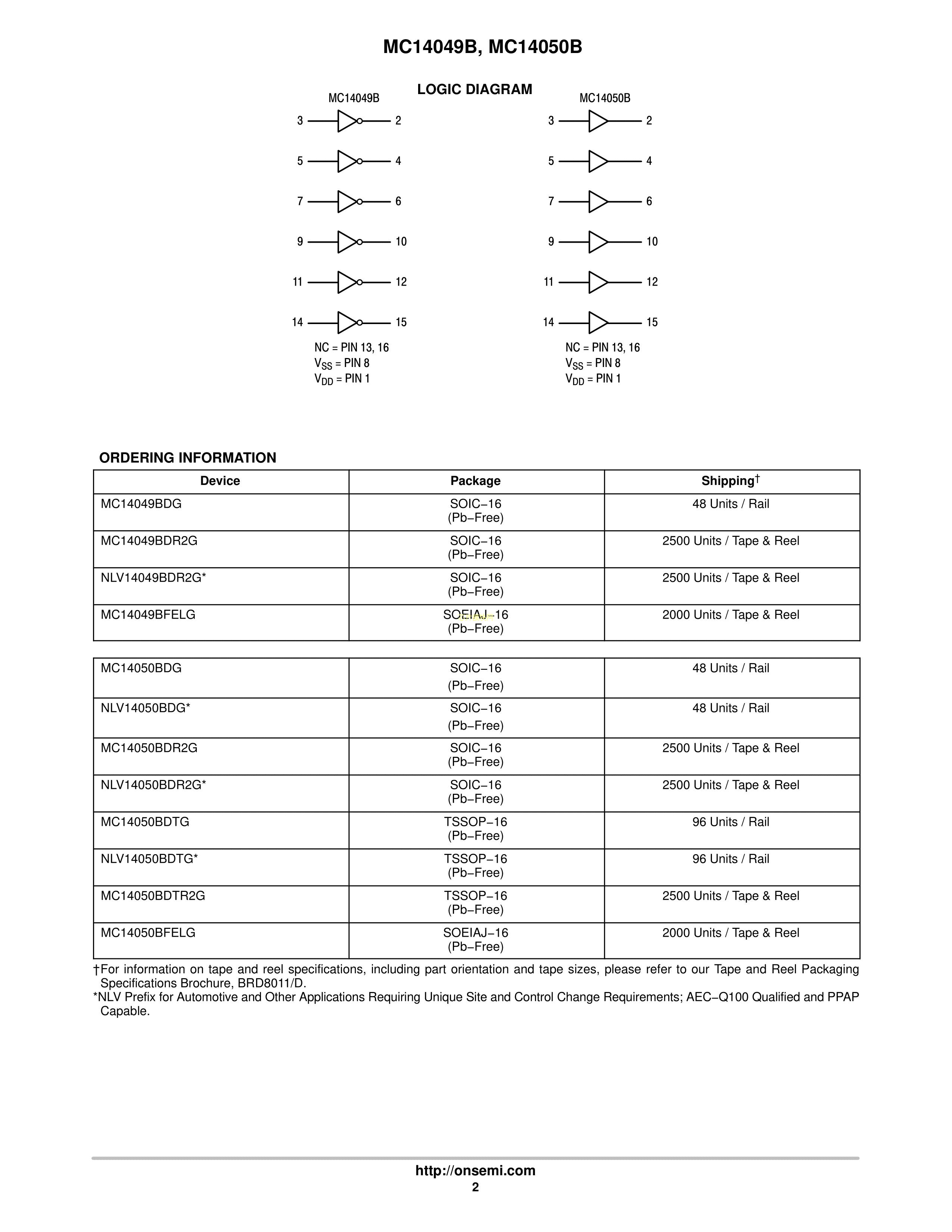 NLV14050BDG数据手册SOIC-16封装onsemi(安森美)PDF规格书,中英文下载