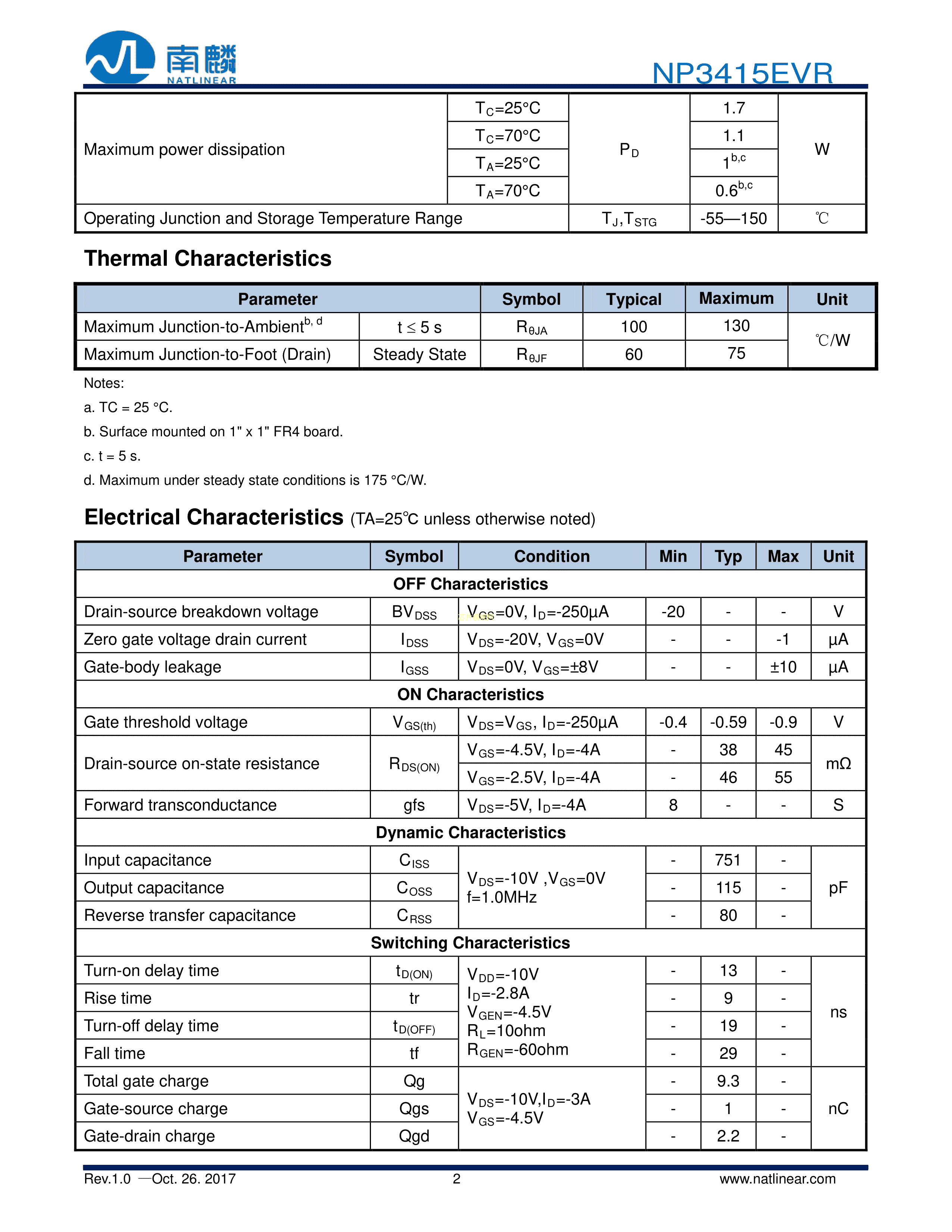 NP3415EVR-G数据手册SOT-23封装natlinear(南麟)PDF规格书,中英文下载