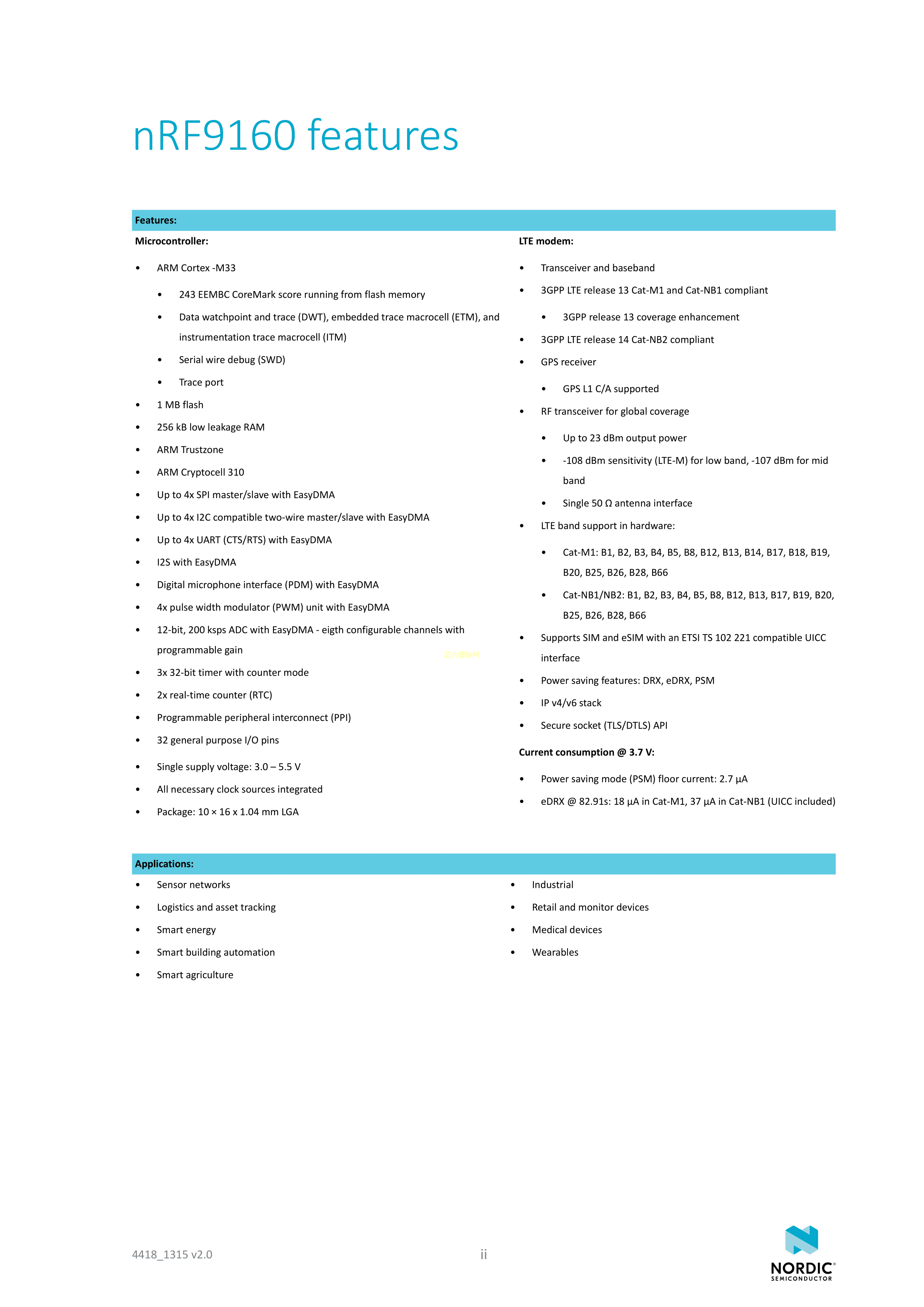 NRF9160-SIBA-B1A-R数据手册Module封装NORDICPDF规格书,中英文下载