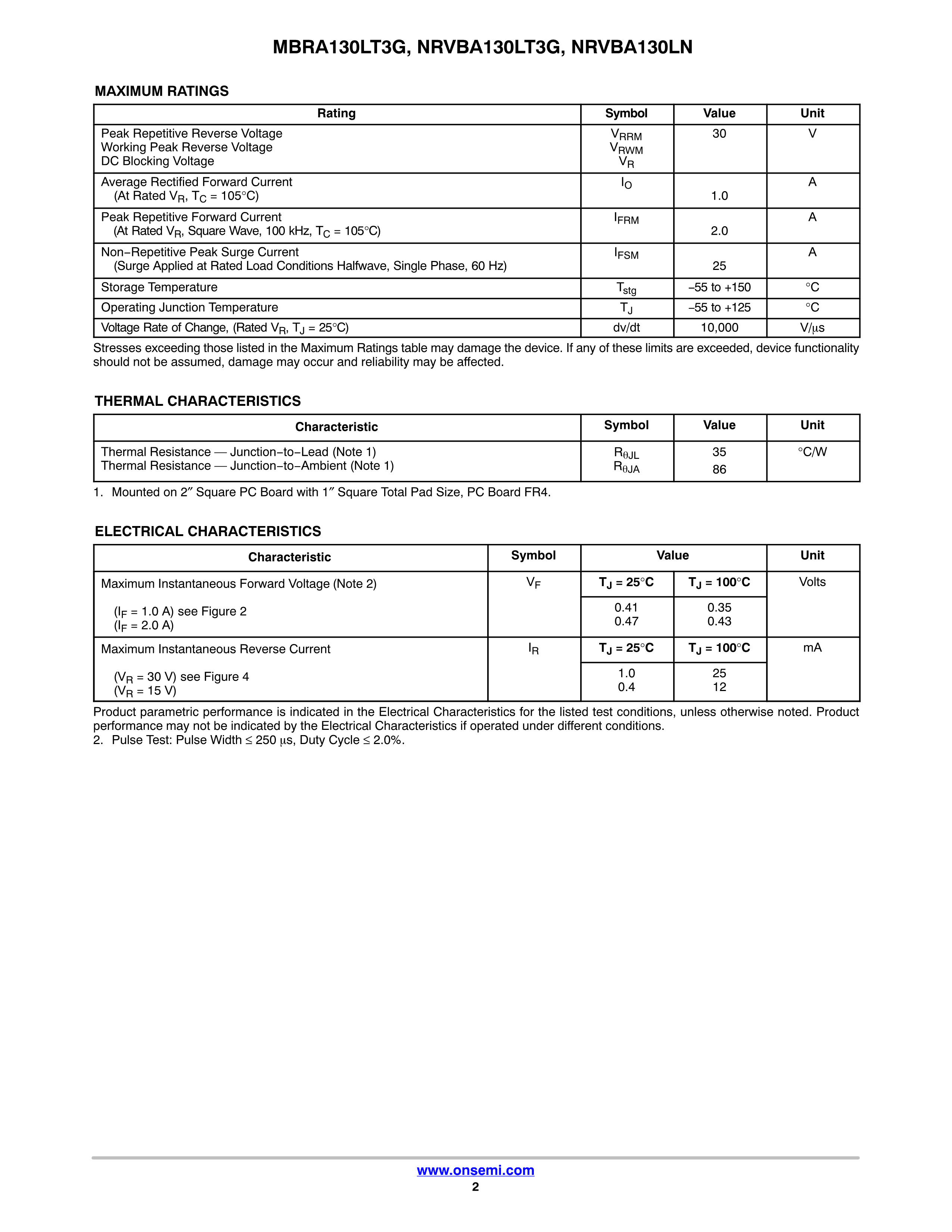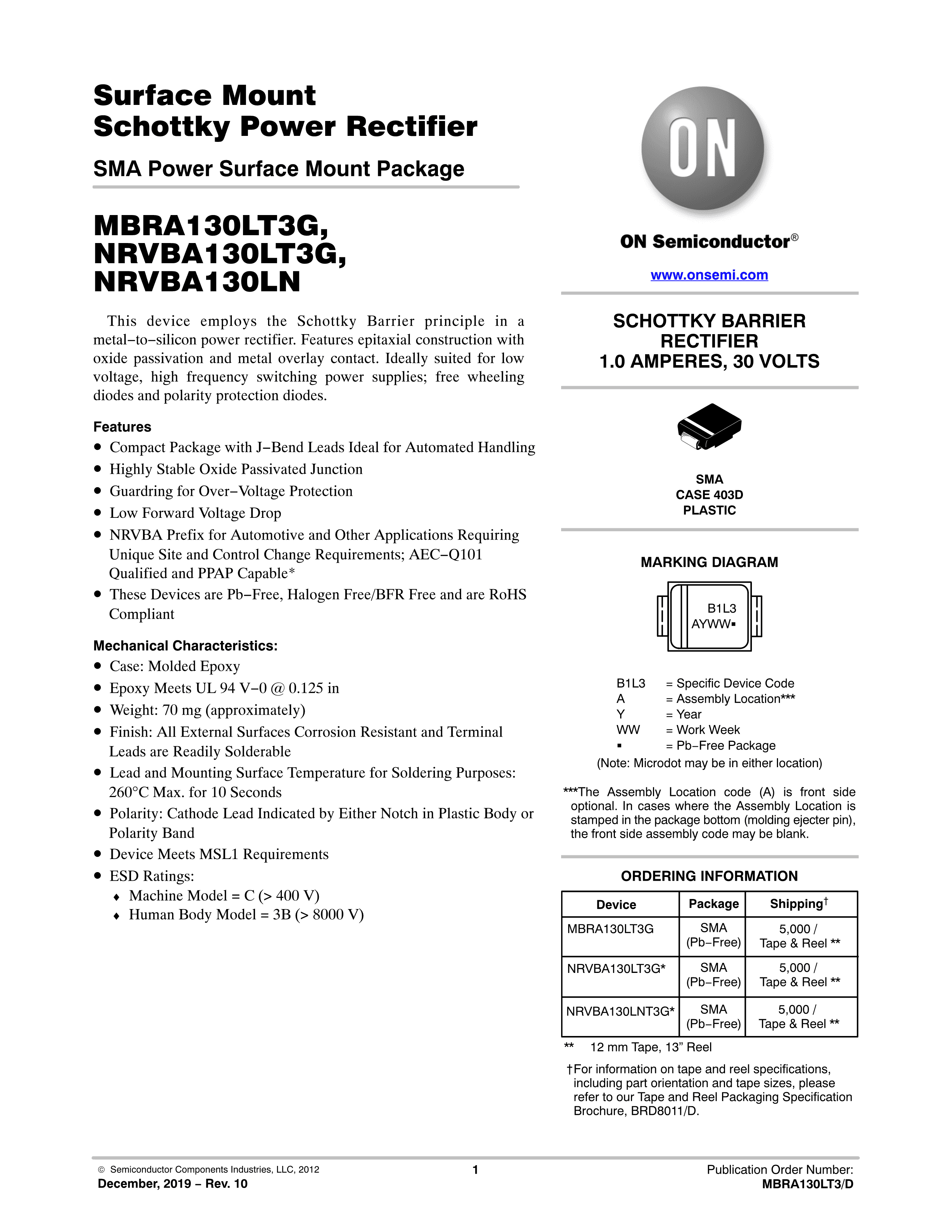 NRVBA130LNT3G数据手册SMA封装onsemi(安森美)PDF规格书,中英文下载