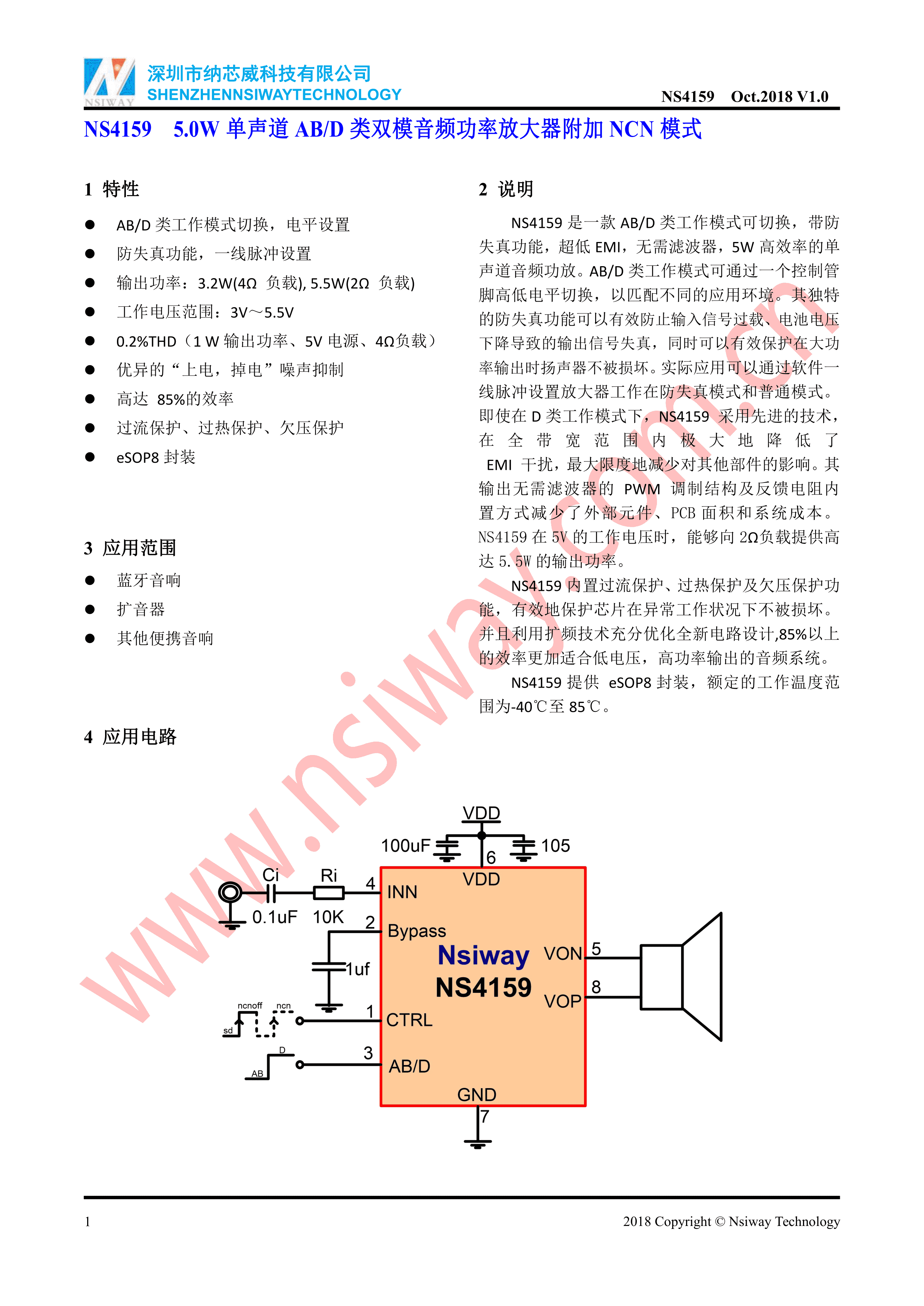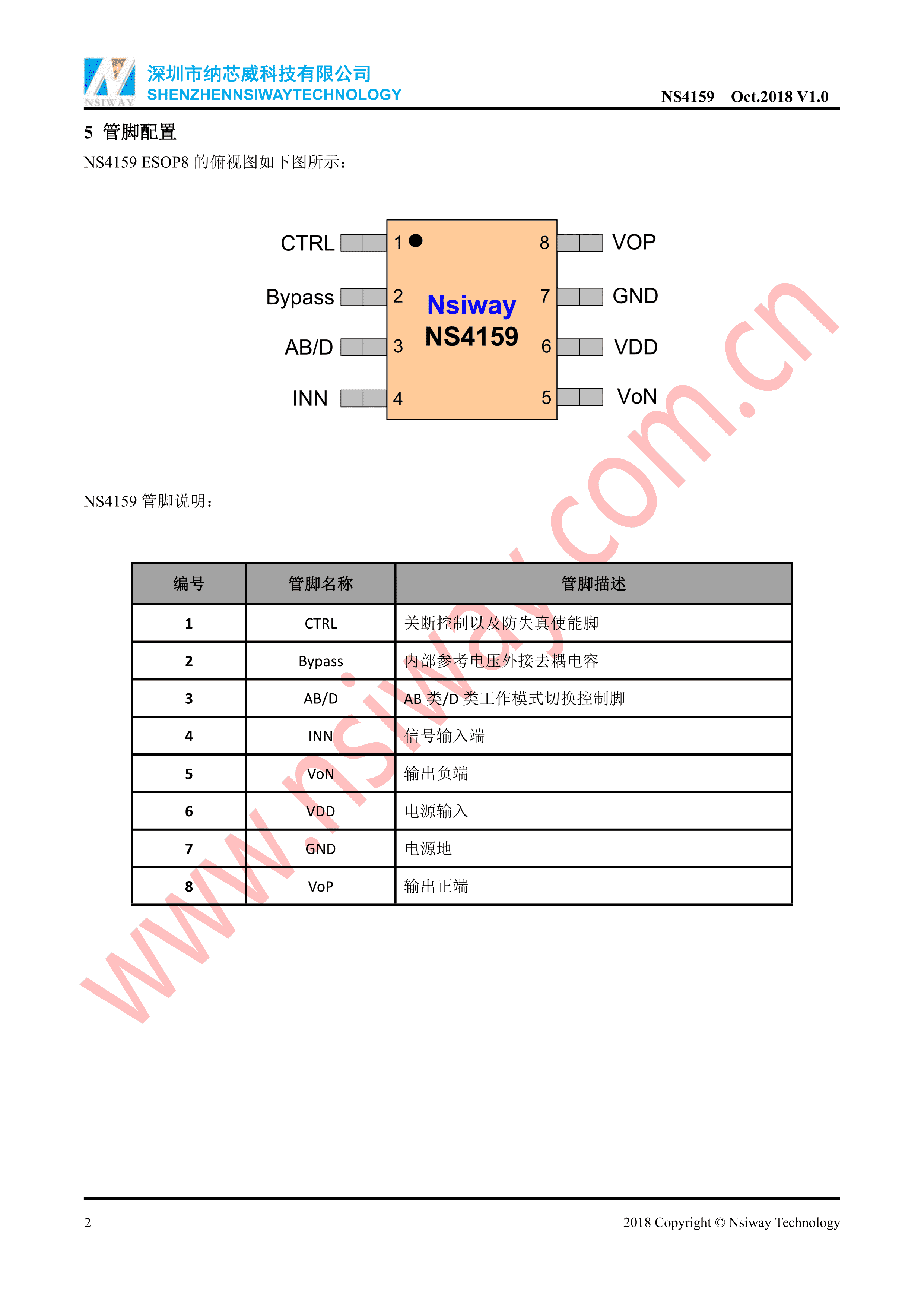 NS4159数据手册ESOP-8封装Nsiway(纳芯威)PDF规格书,中英文下载