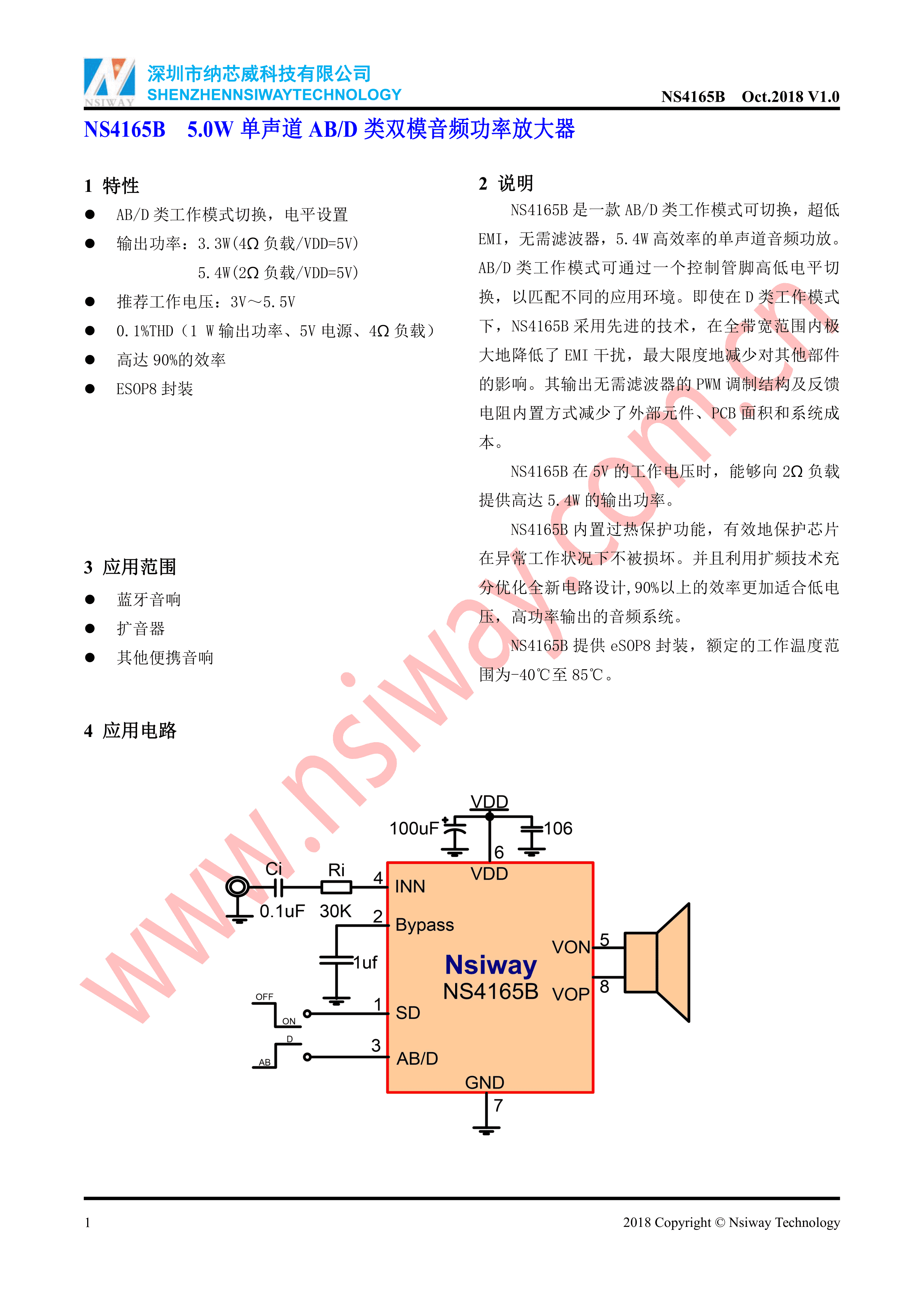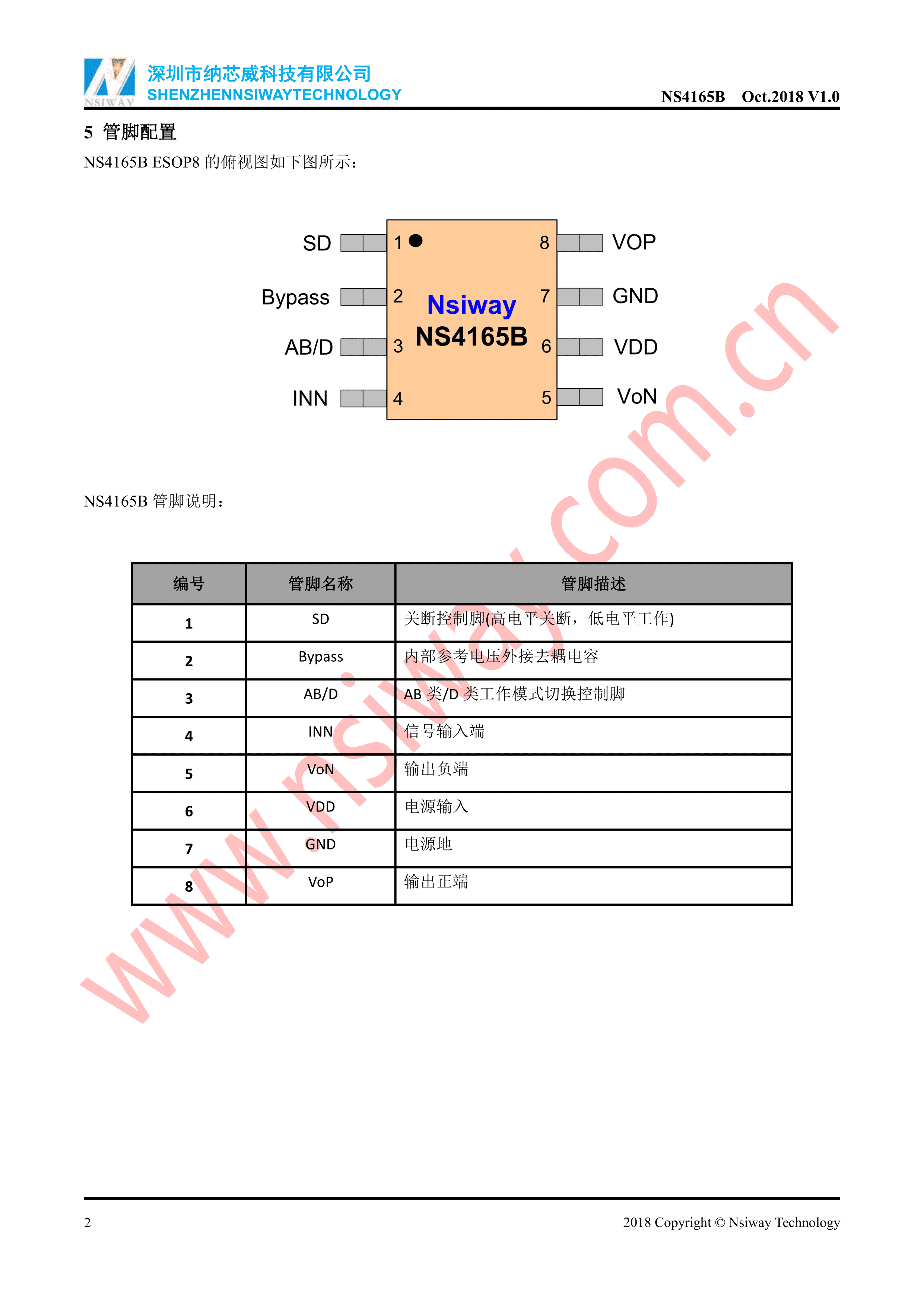 NS4165数据手册SOP-8EP_150mil封装Nsiway(纳芯威)PDF规格书,中英文下载