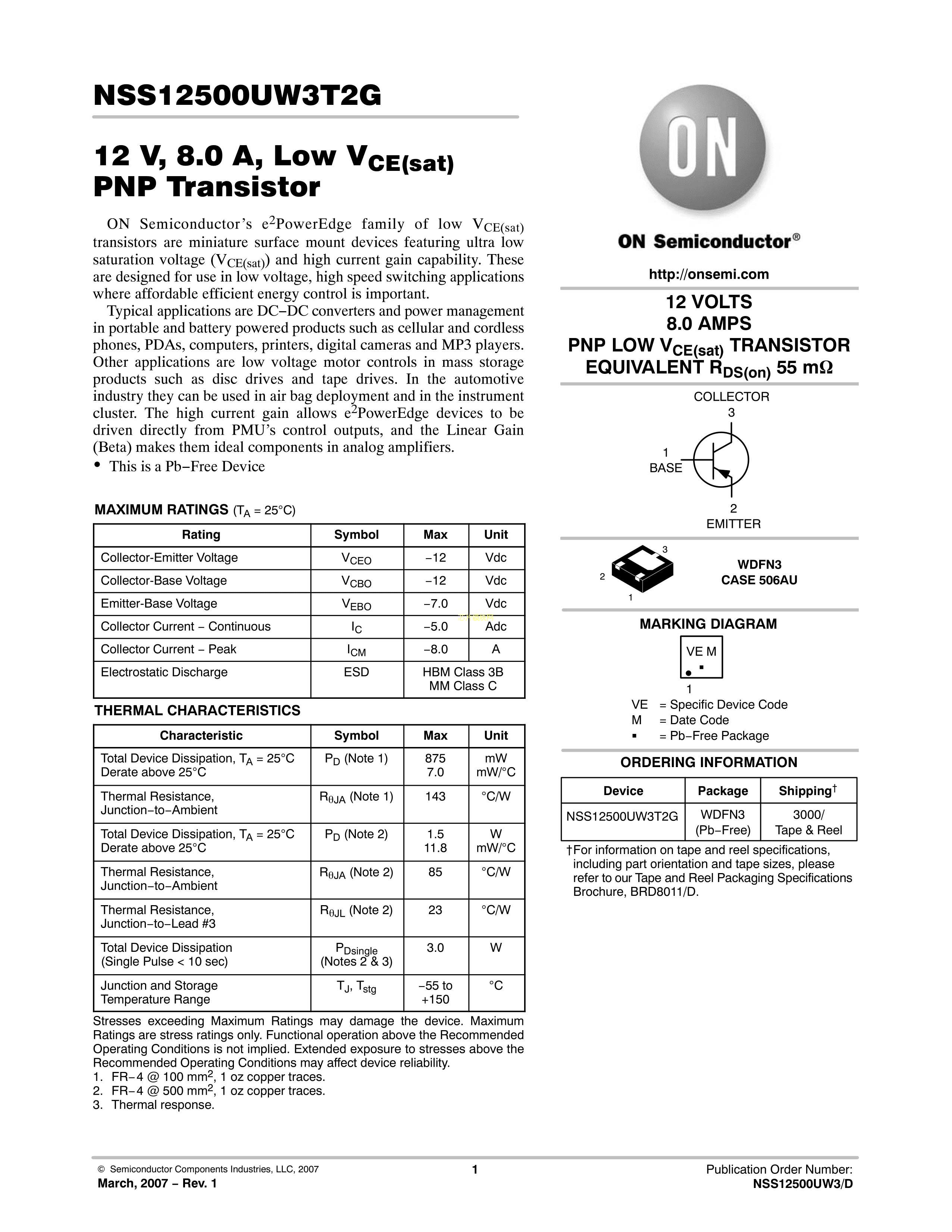 NSS12500UW3T2G数据手册WDFN-3封装onsemi(安森美)PDF规格书,中英文下载