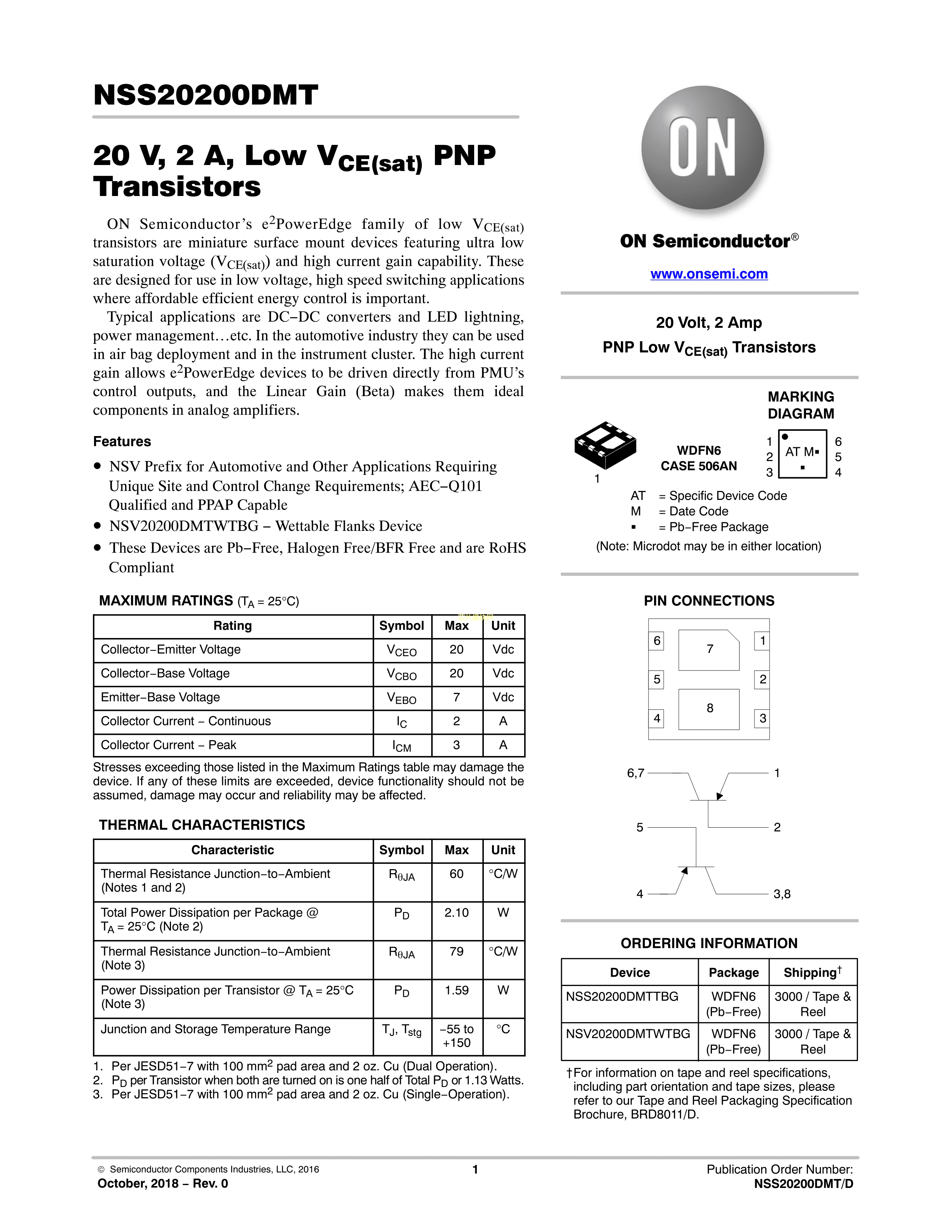 NSS20200DMTTBG数据手册WDFN-6封装onsemi(安森美)PDF规格书,中英文下载