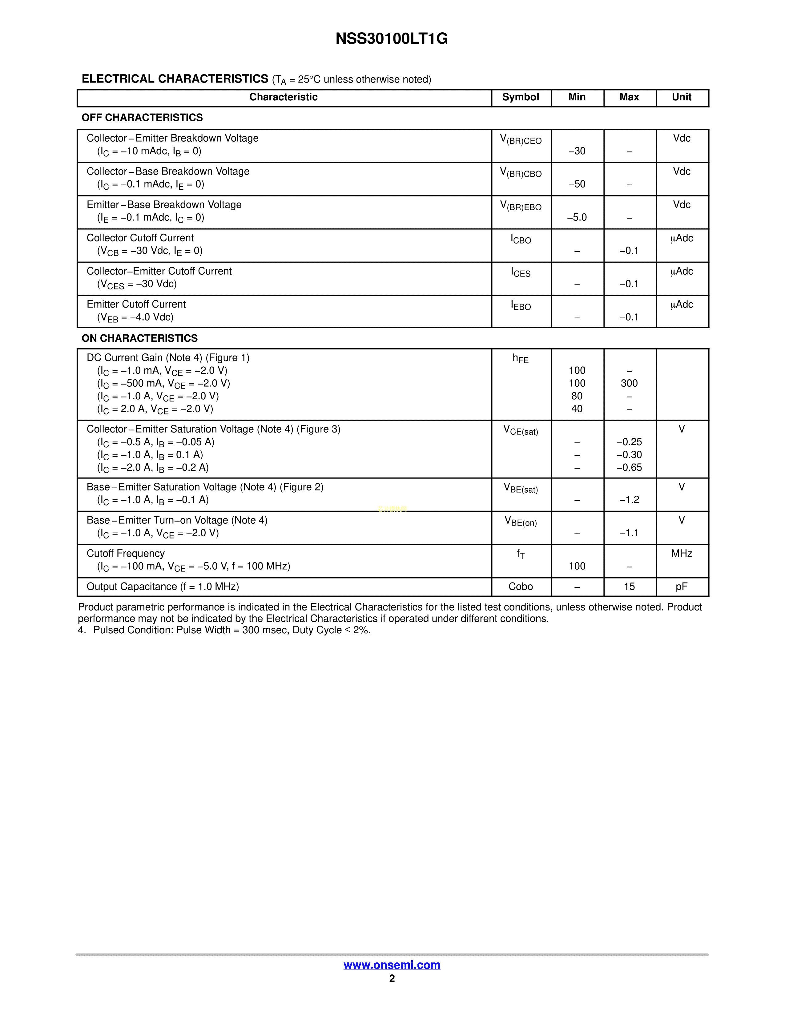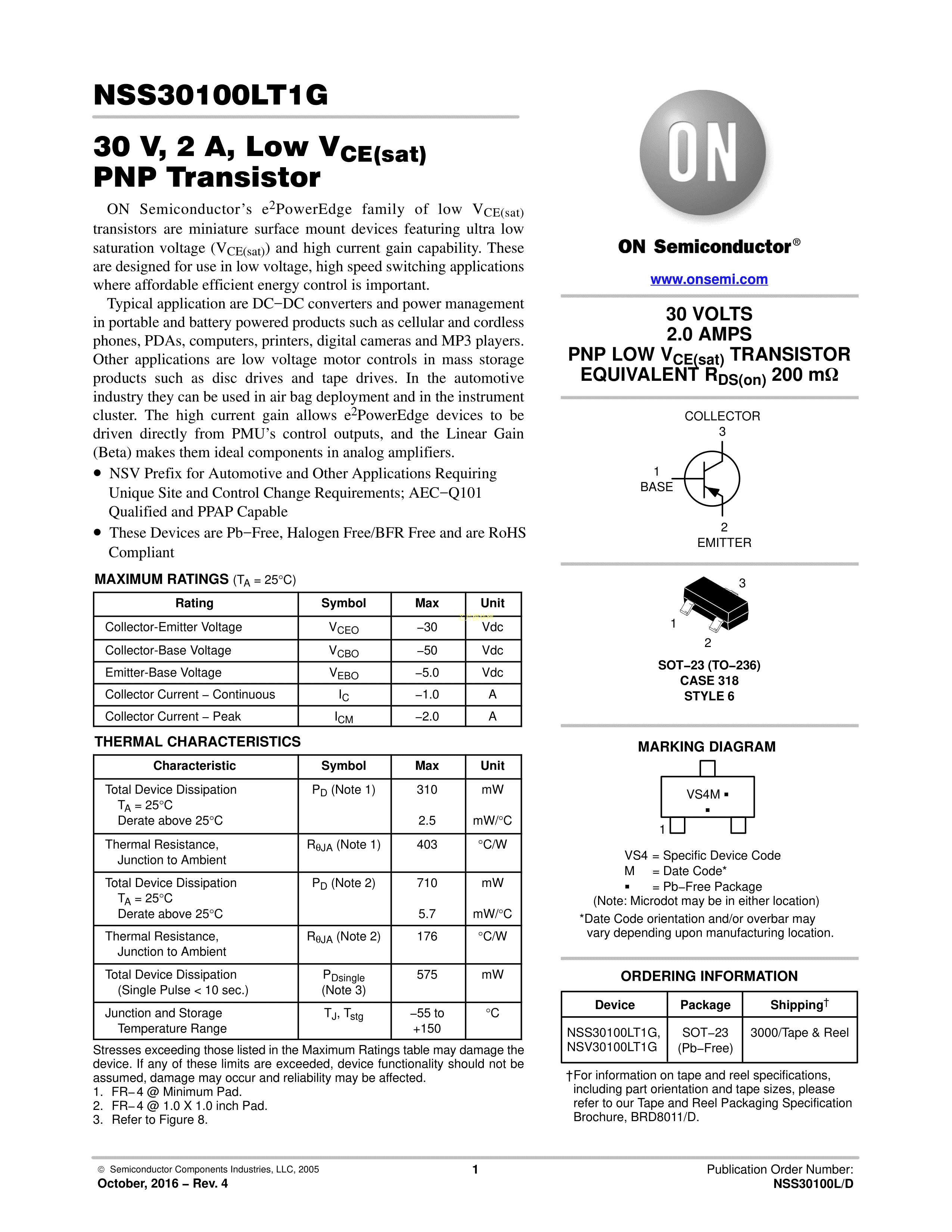 NSS30100LT1G数据手册SOT-23(SOT-23-3)封装onsemi(安森美)PDF规格