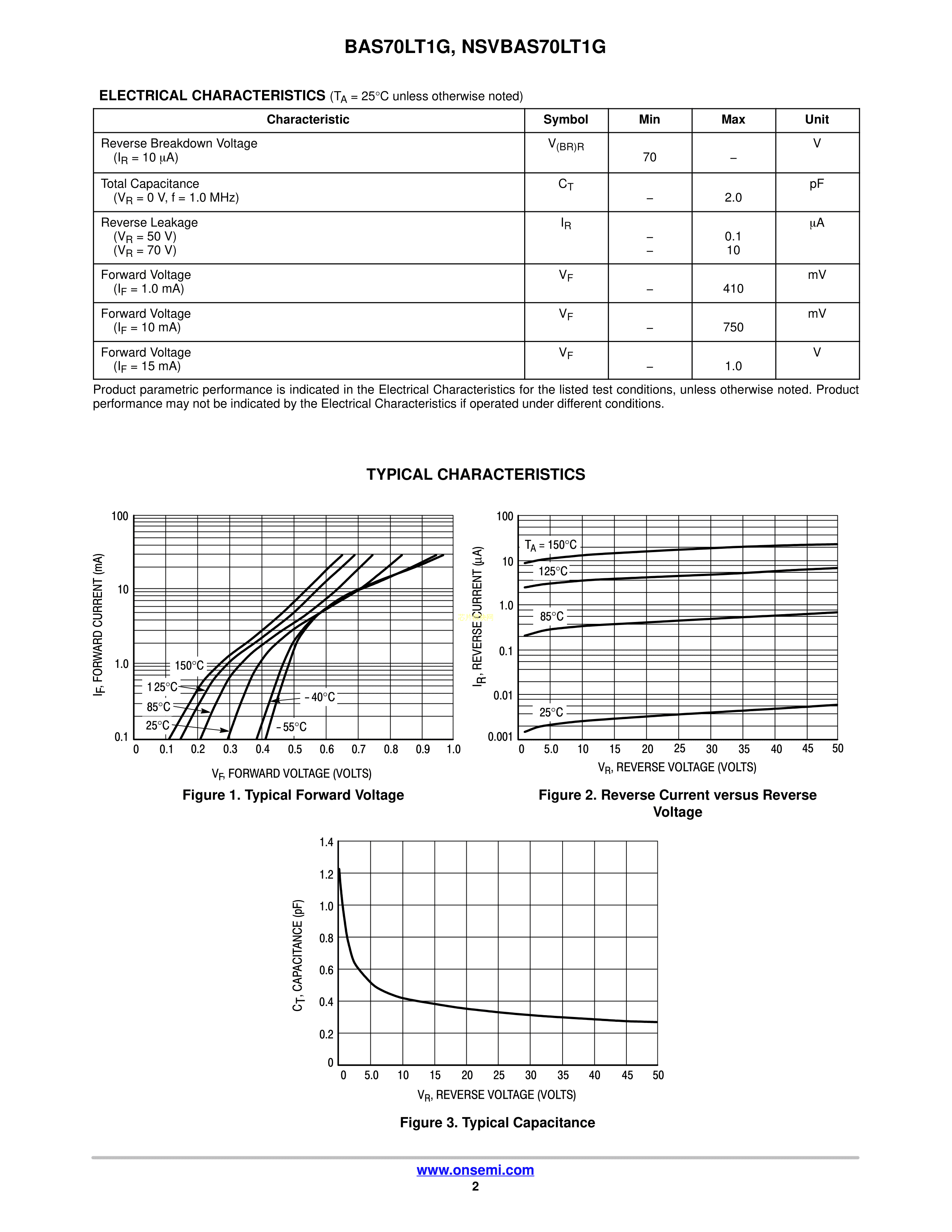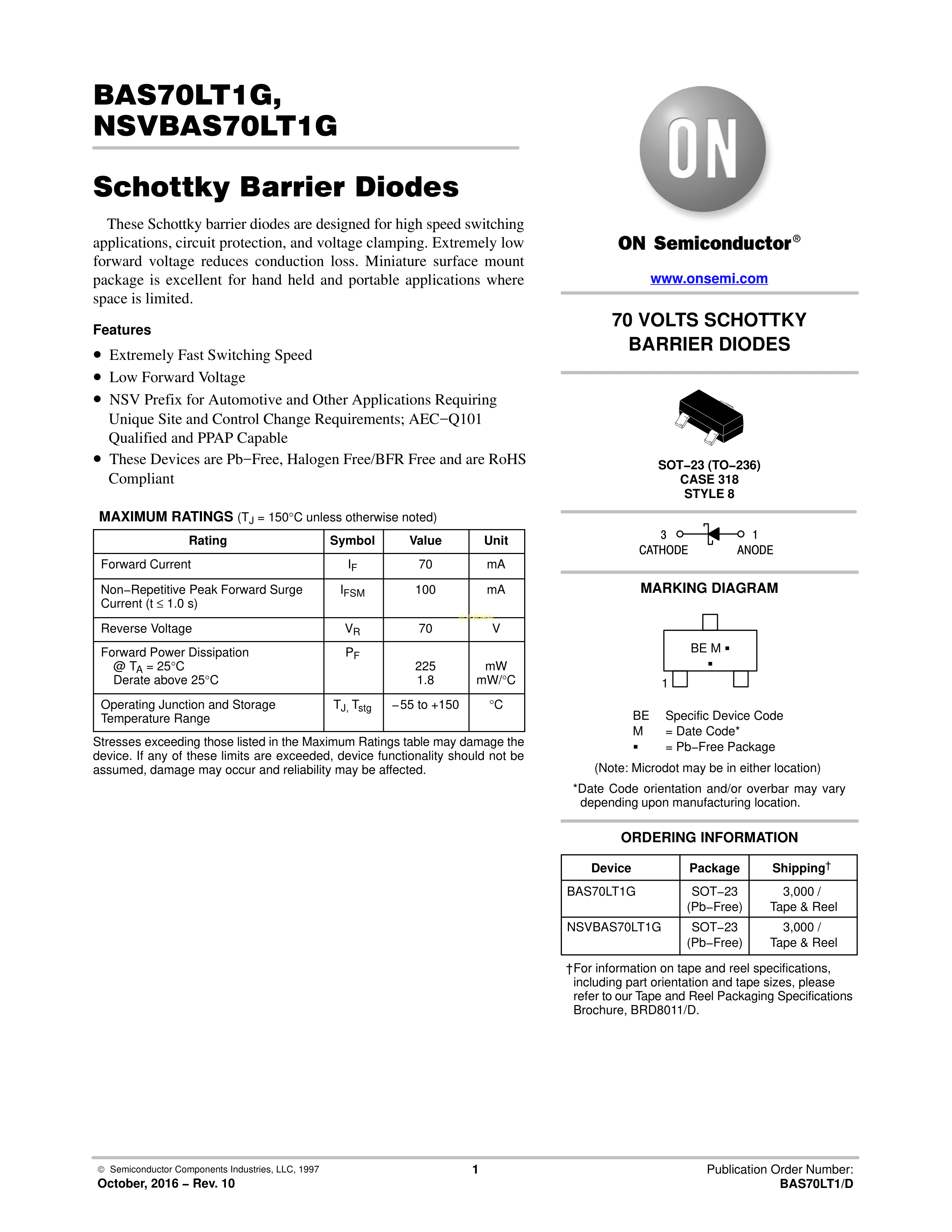 NSVBAS70LT1G数据手册SOT-23(SOT-23-3)封装onsemi(安森美)PDF规格书,中英文下载