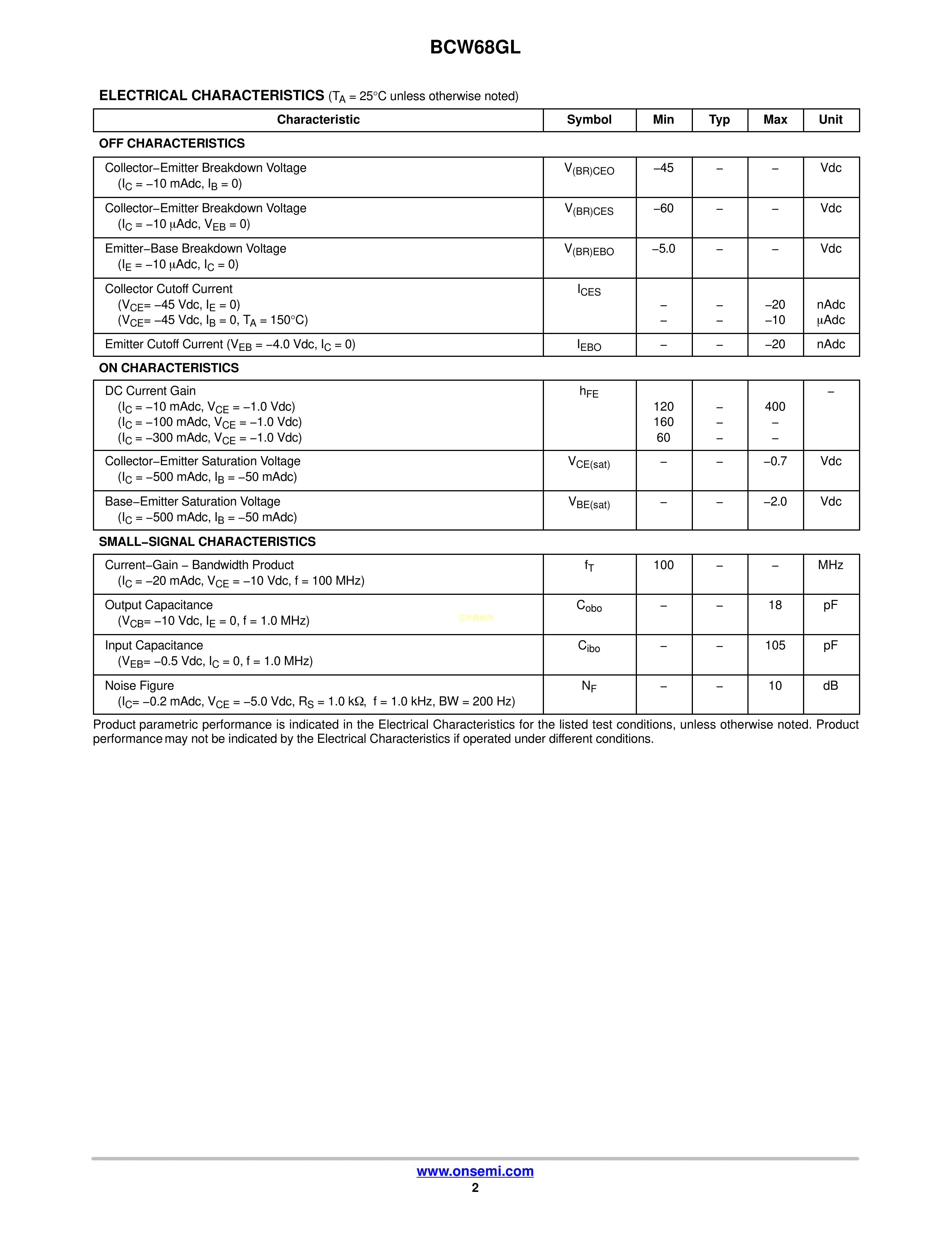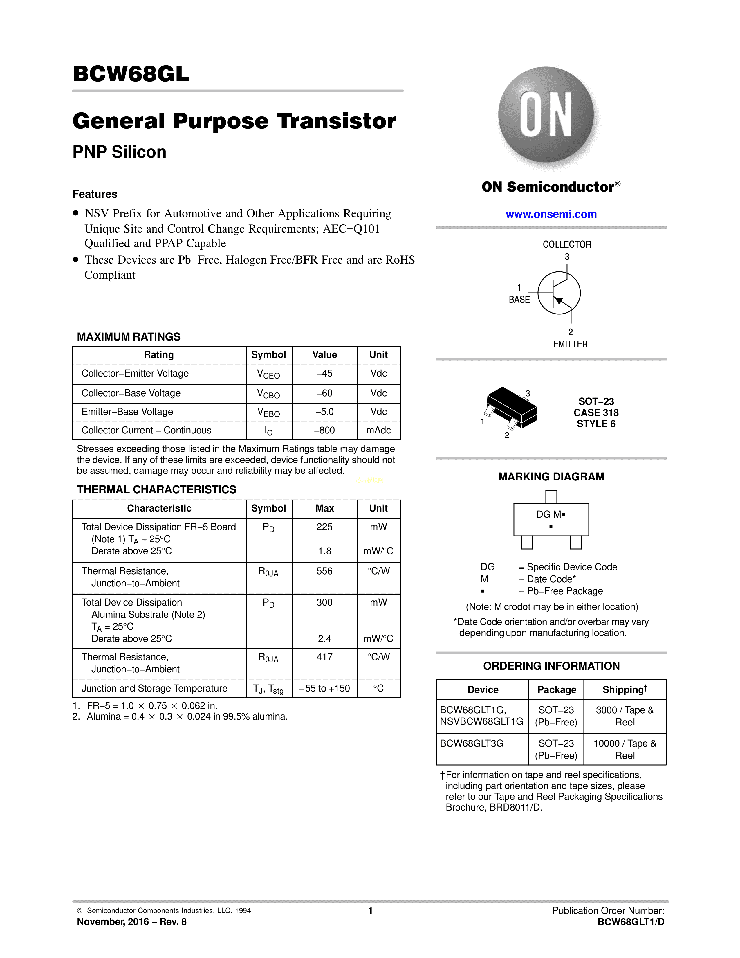 NSVBCW68GLT1G数据手册SOT-23封装onsemi(安森美)PDF规格书,中英文下载