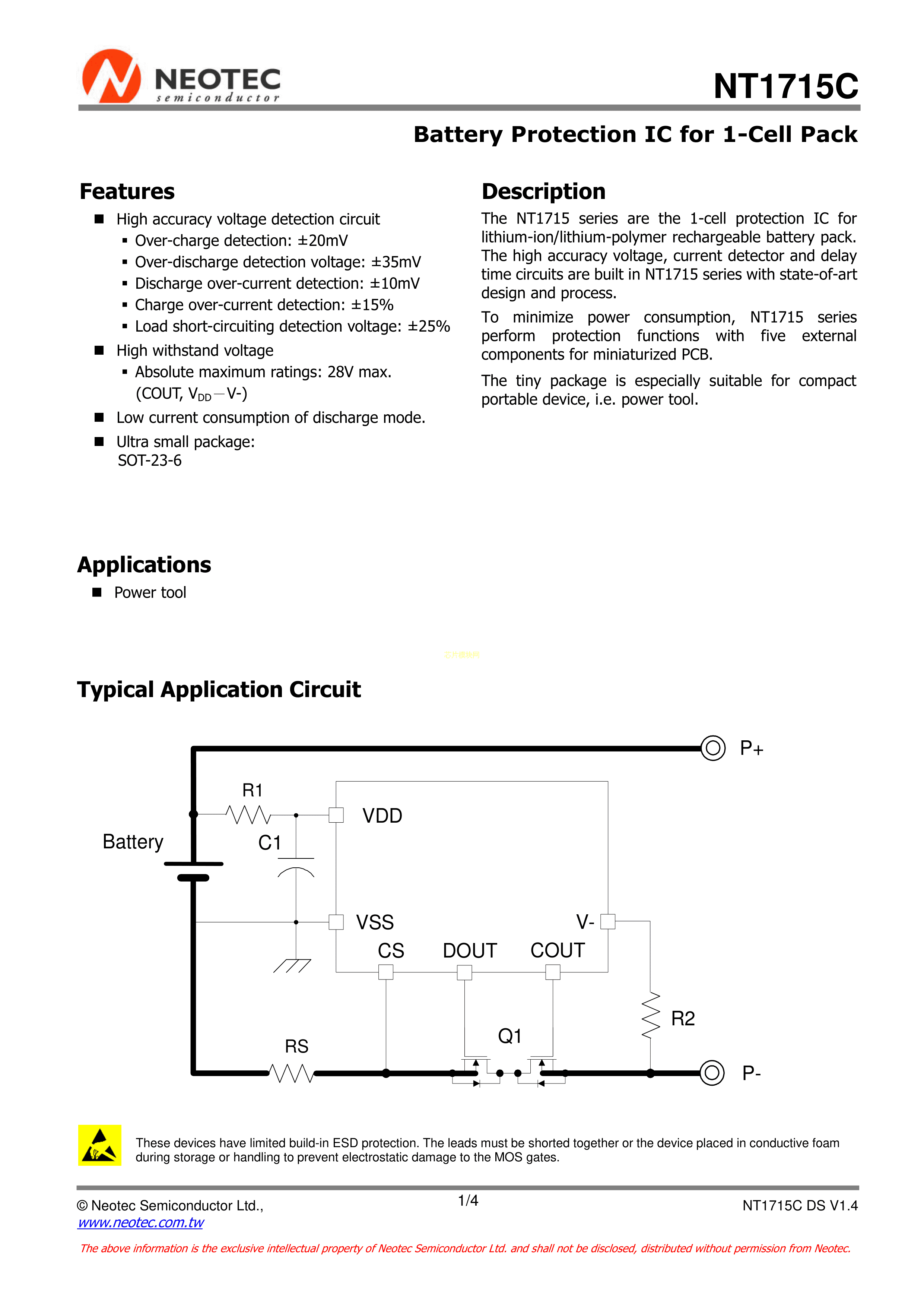 NT1715C-DPAA6数据手册SOT-23-6封装NEOTEC(台湾新德)PDF规格书,中英文下