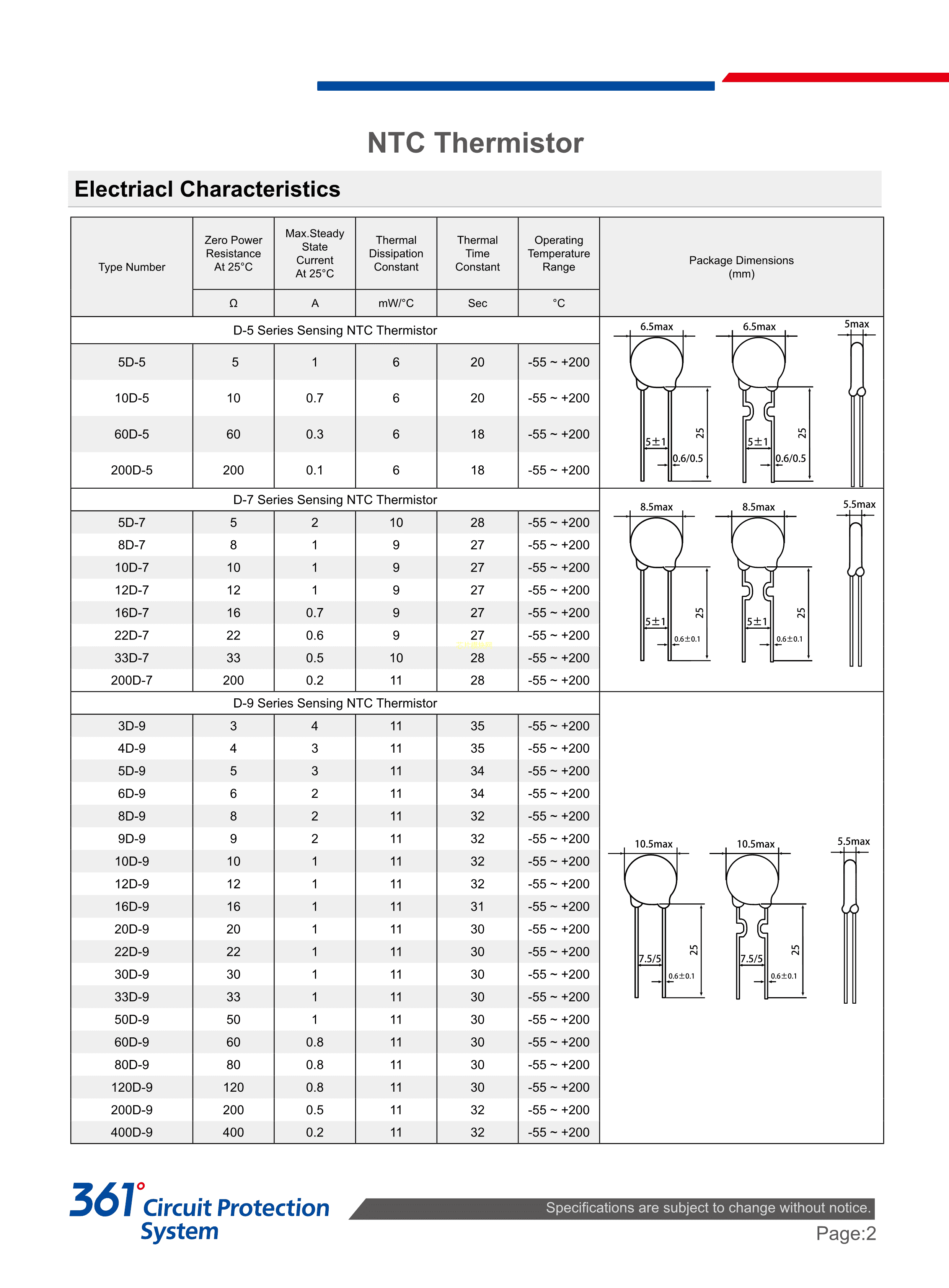 NTC_5D-07数据手册径向引线P5mm封装RUILON(瑞隆源)PDF规格书,中英文下载