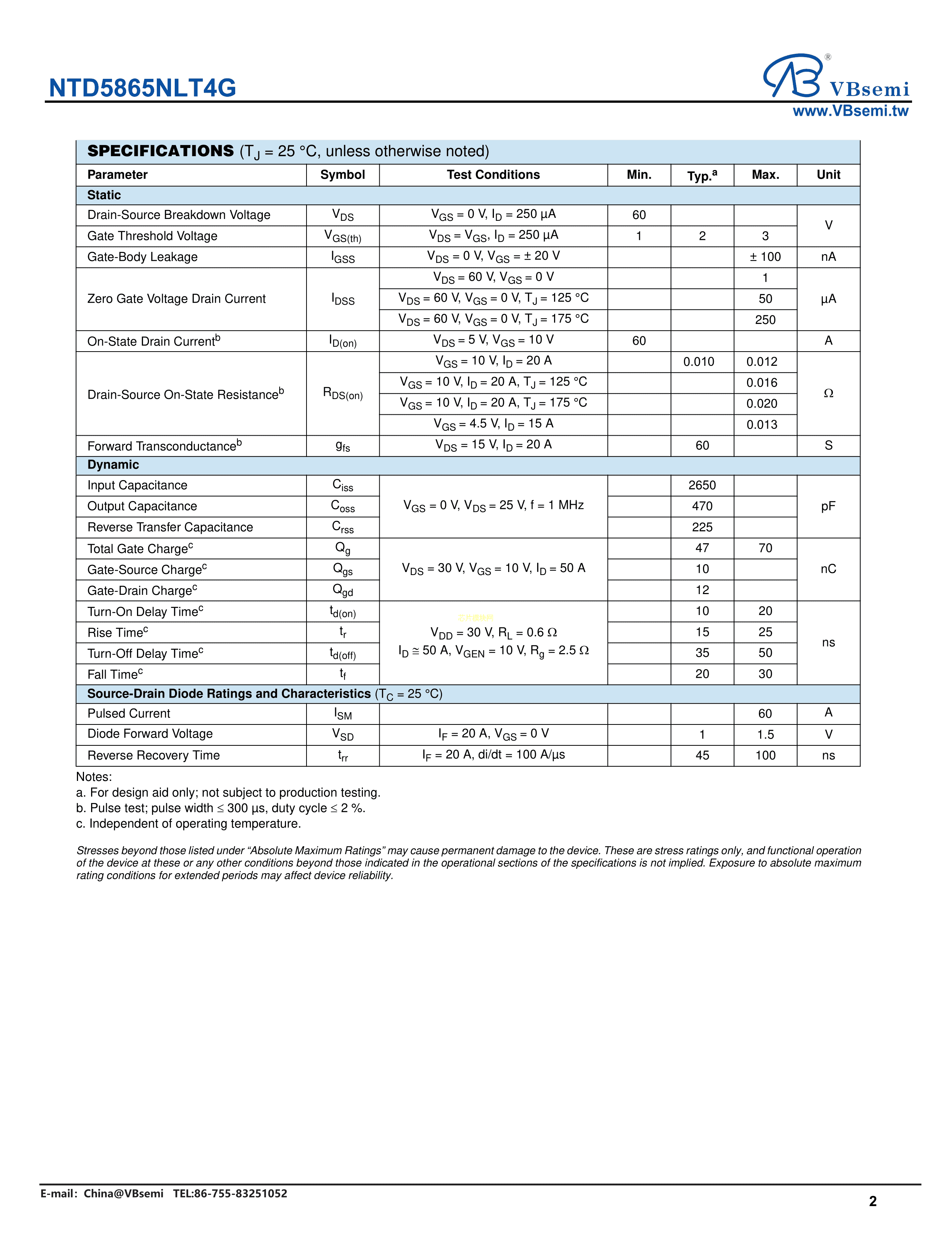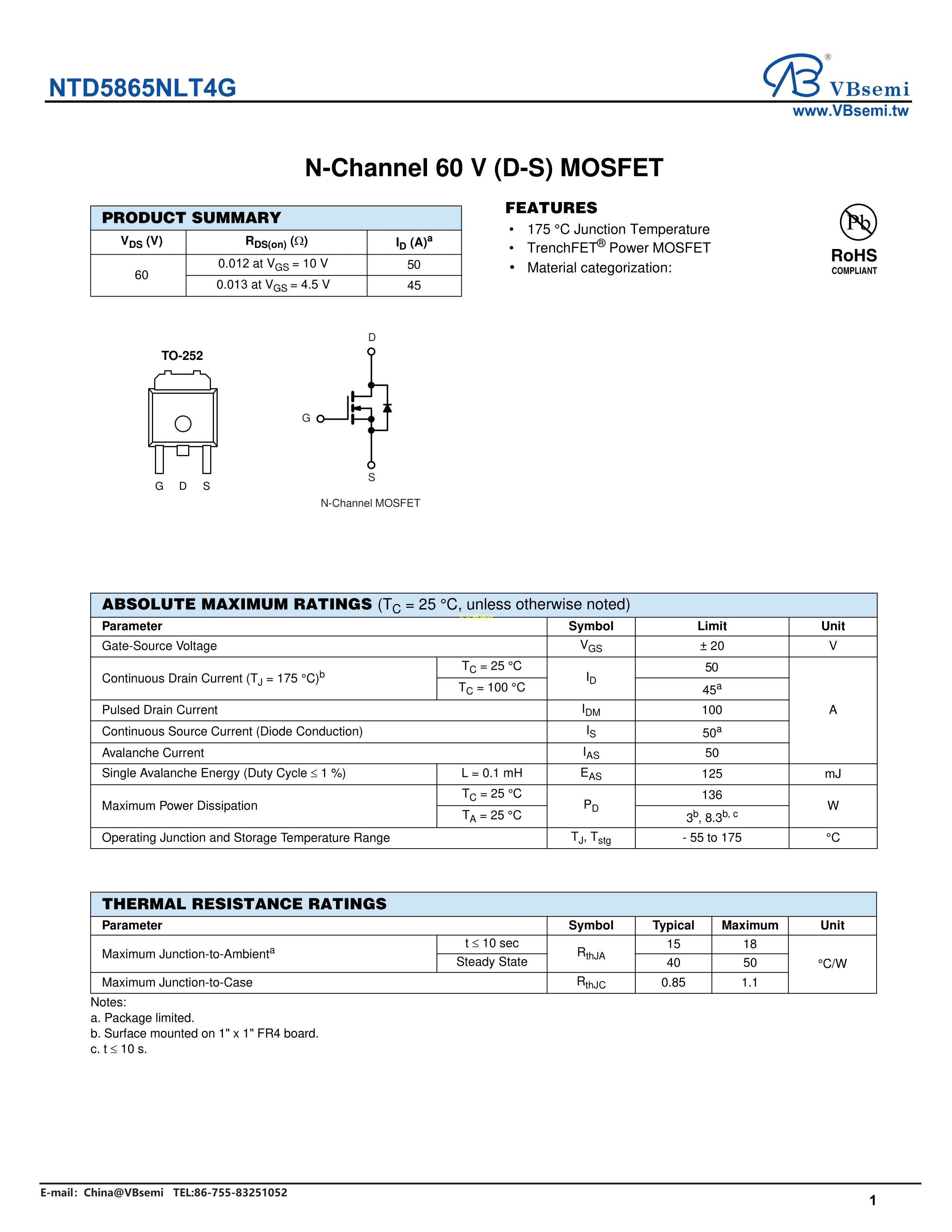 NTD5865NLT4G-15数据手册TO-252封装VBsemi(台湾微碧)PDF规格书,中英文下载