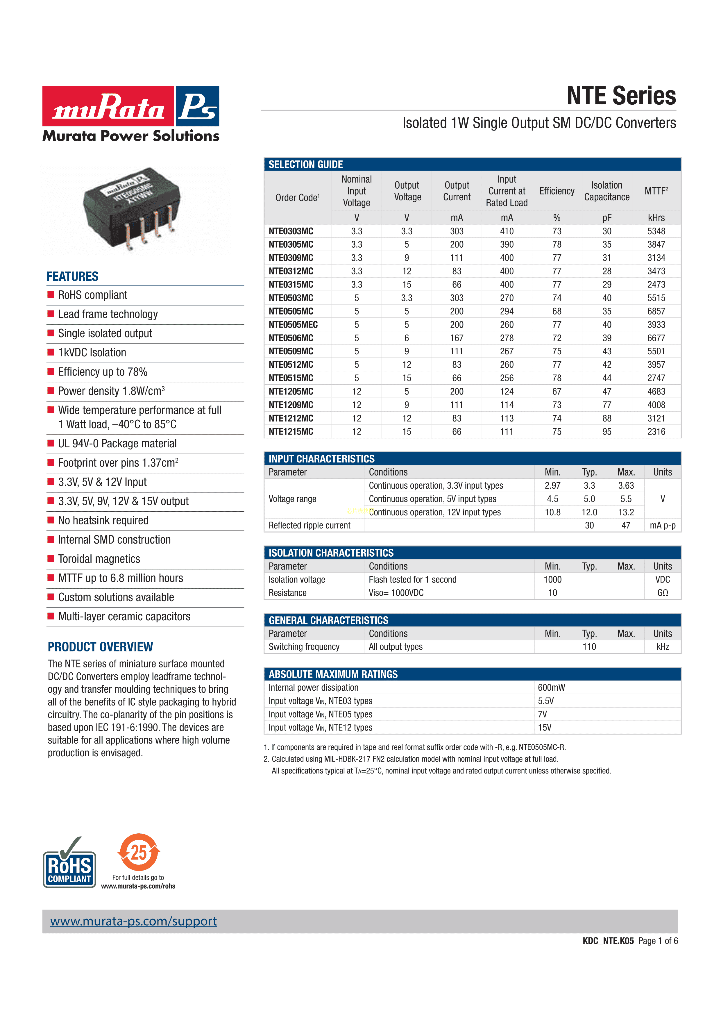 NTE1205MC-R数据手册-封装muRata(村田)PDF规格书,中英文下载