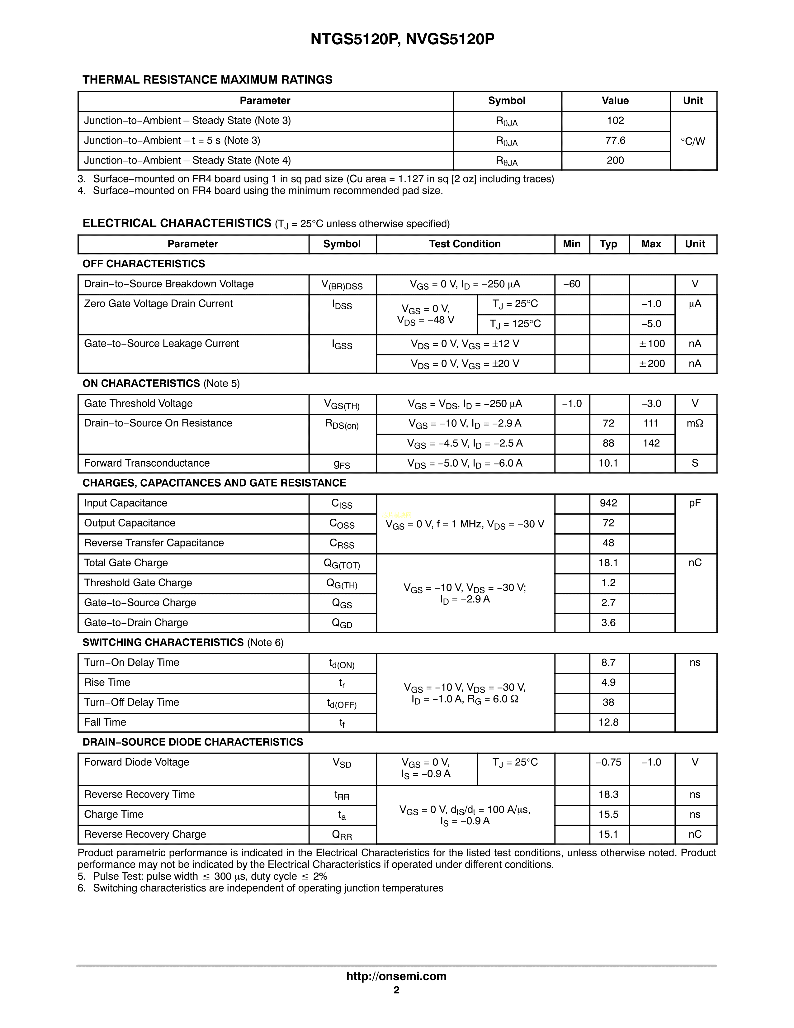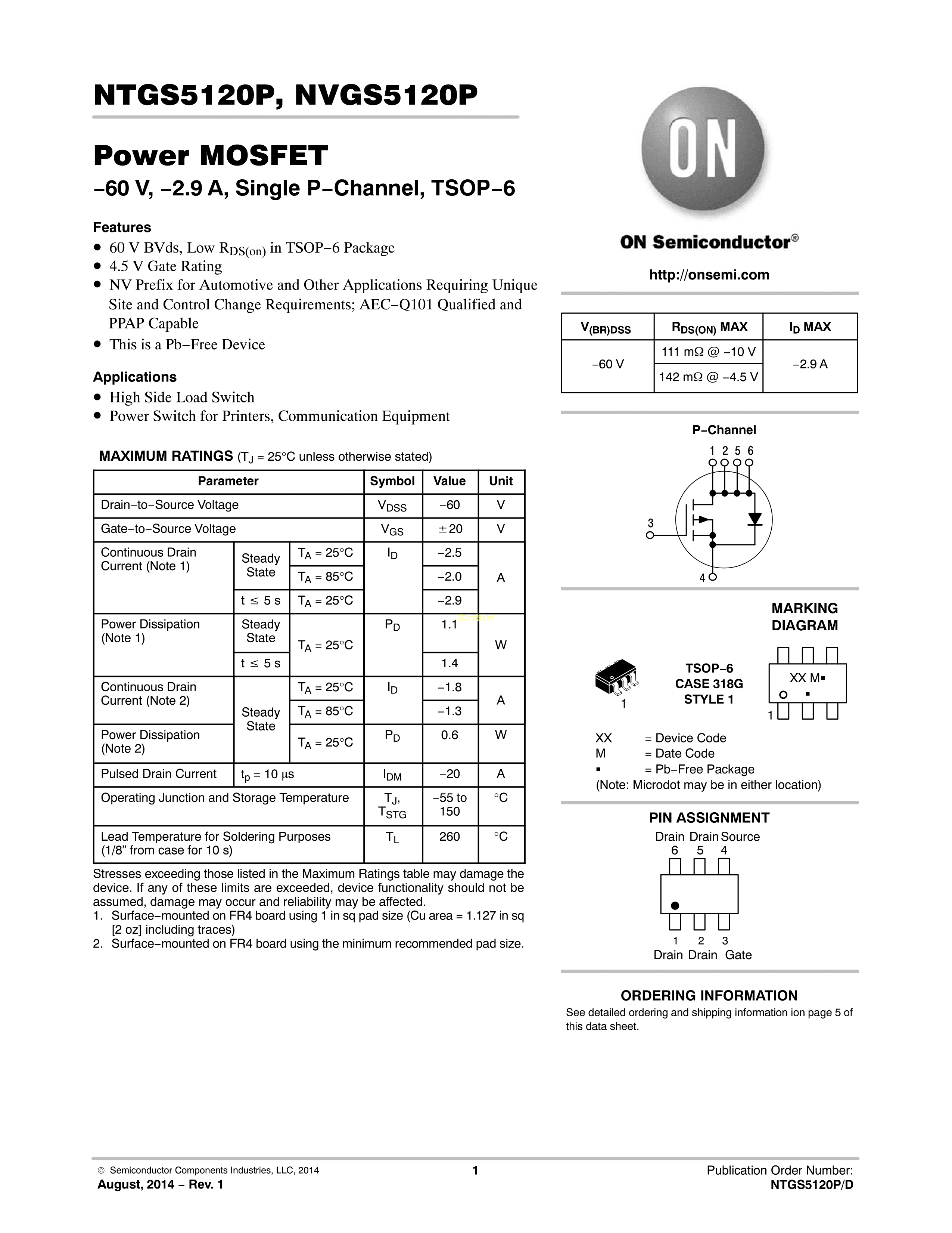 NTGS5120PT1G数据手册TSOP-6封装onsemi(安森美)PDF规格书,中英文下载