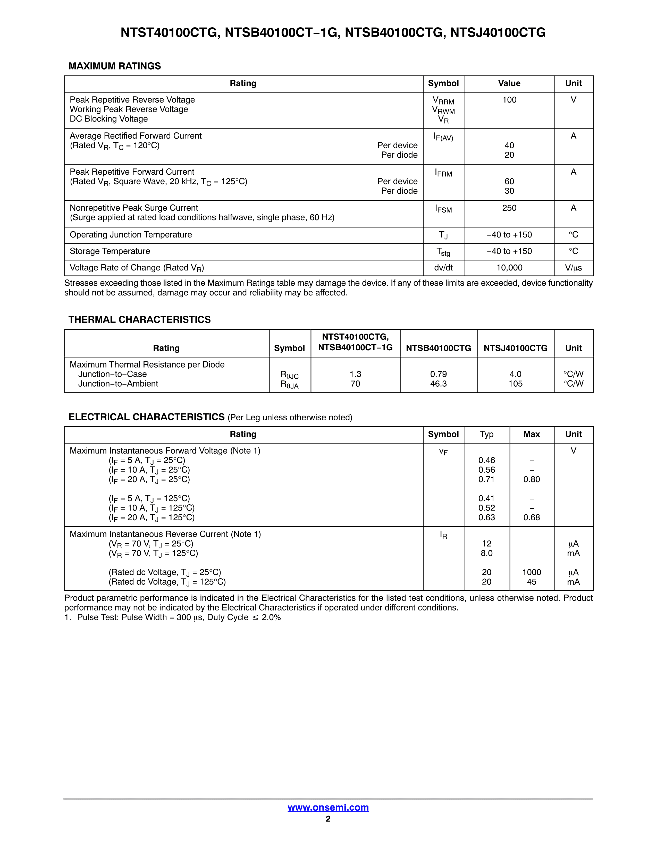 NTSB40100CTT4G数据手册D2PAK-3封装onsemi(安森美)PDF规格书,中英文下载